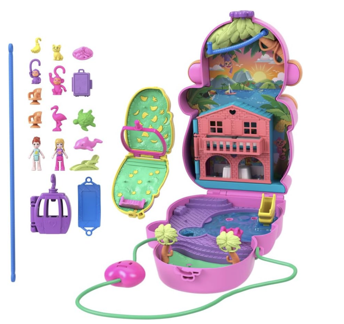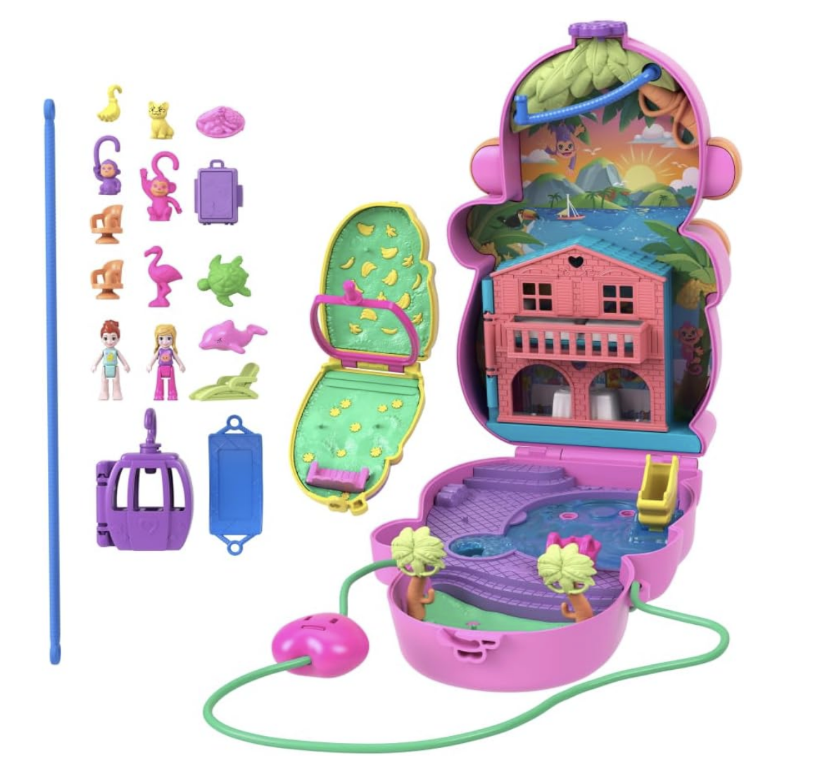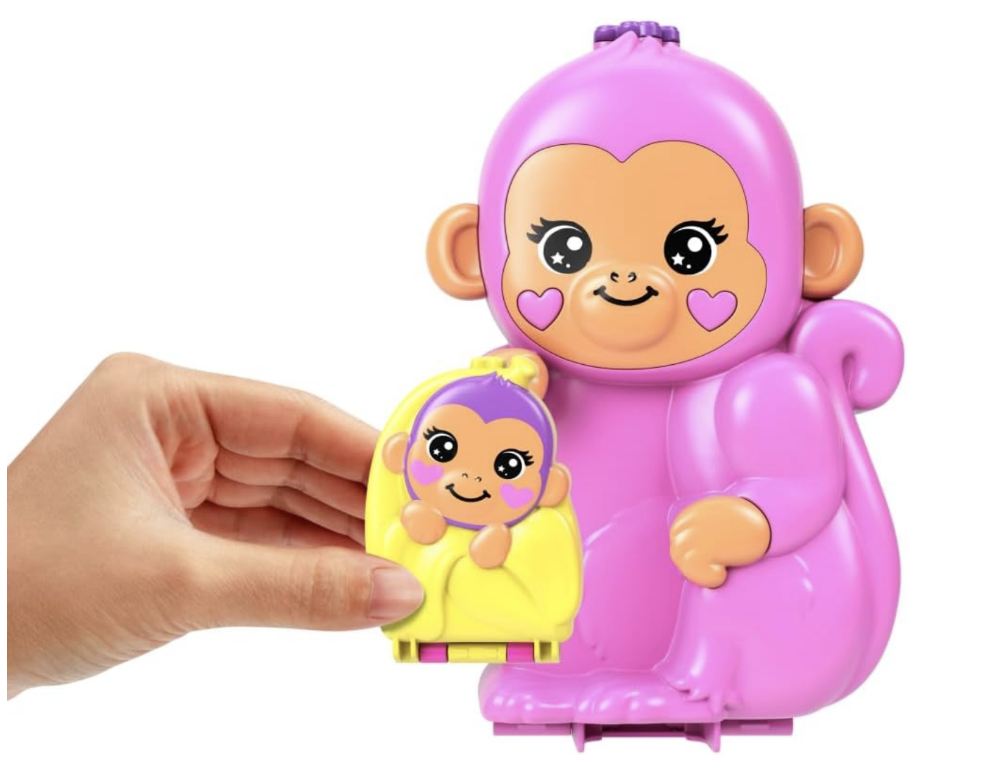 Polly Pocket Dolls & Playset with Pets & 13 Accessories, 2-in-1 Momma Monkey & Baby Wearable Purse