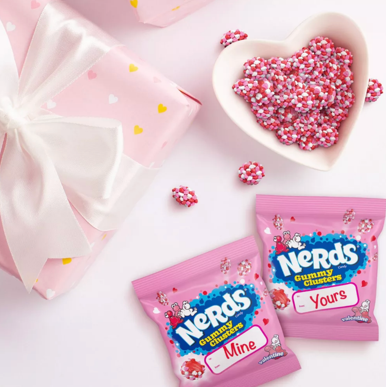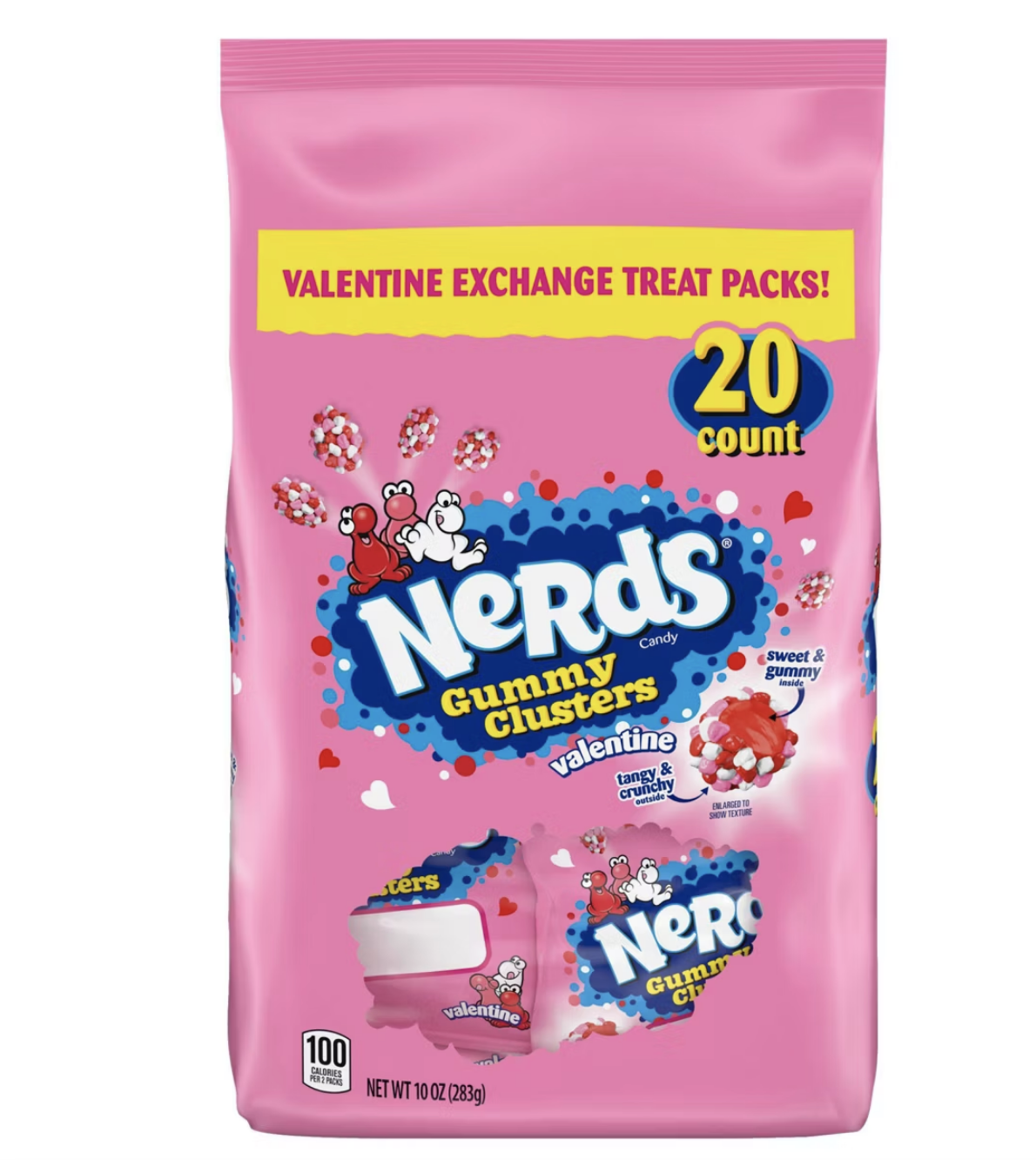 • A TWIST ON A FAVORITE: NERDS Valentine Gummy Clusters are packed with the tangy, crunchy NERDS everyone loves in a whole new way! Tangy, crunchy, sweet, and gummy all come together in this sensational snack.