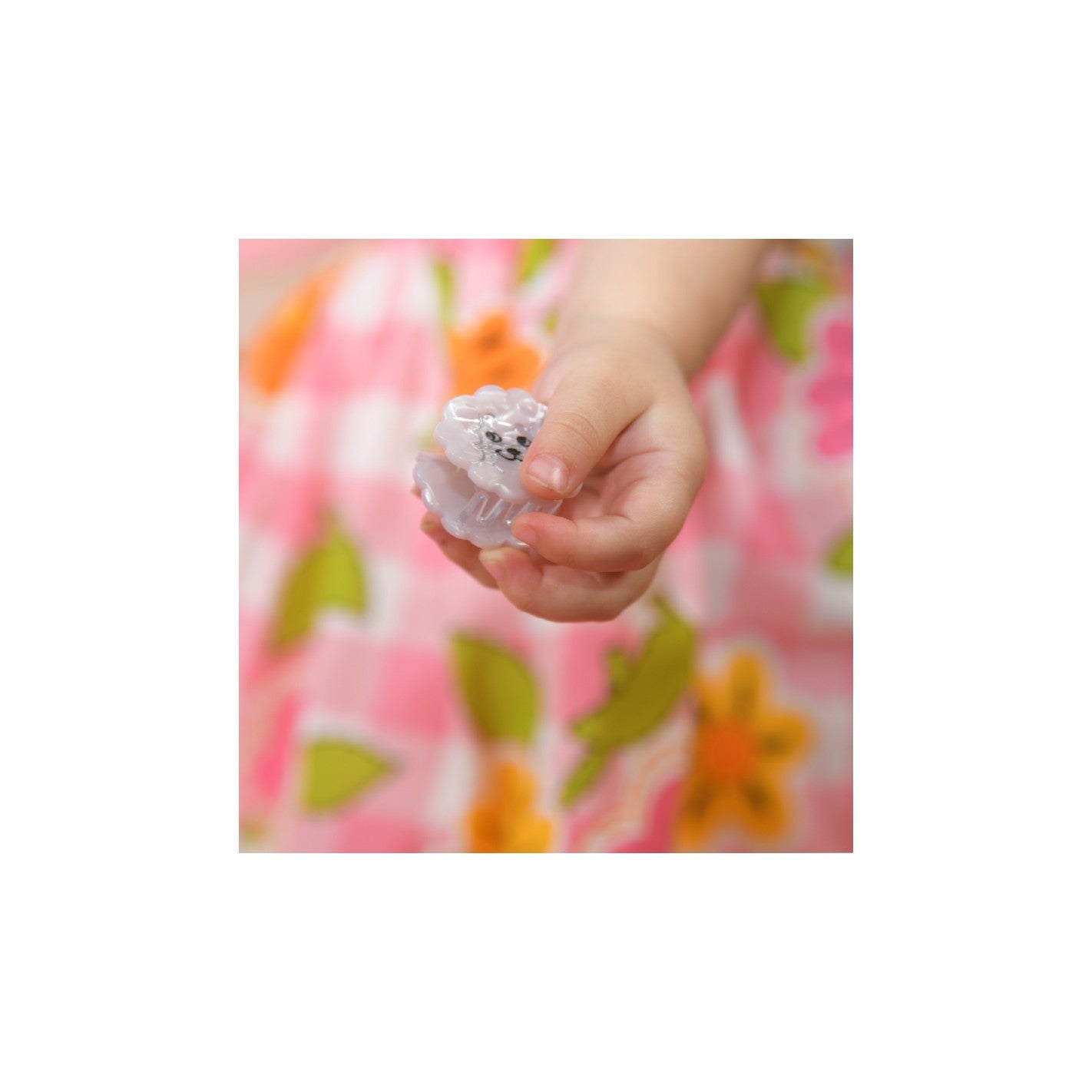 A mini hair claw shaped as a Bichon, with a cute smile and day-dreaming eyes. We love the acetate matter and its pearly look, as well as the adorable cloud shape.