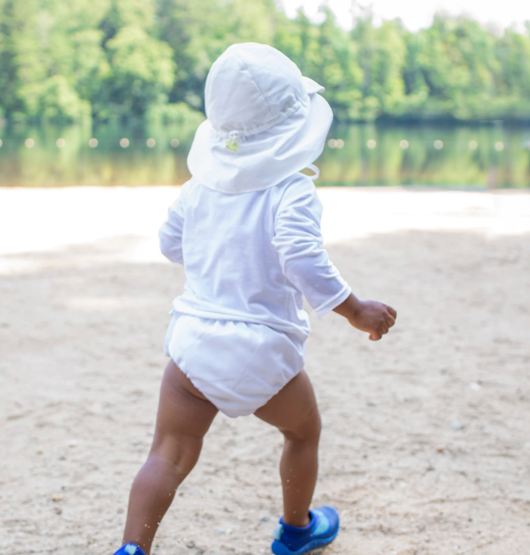 Year-round basic | UPF 50+ | Extra neck coverage, stay-put tie strap | Quick-dry material for active play | Wicking liner for comfort | Adjustable toggle for custom fit & to grow with baby | Lightweight & packable for easy on the go | Coordinates with i play.® Swim & Sun Wear | Materials: Microfiber polyester shell; Polyester lining