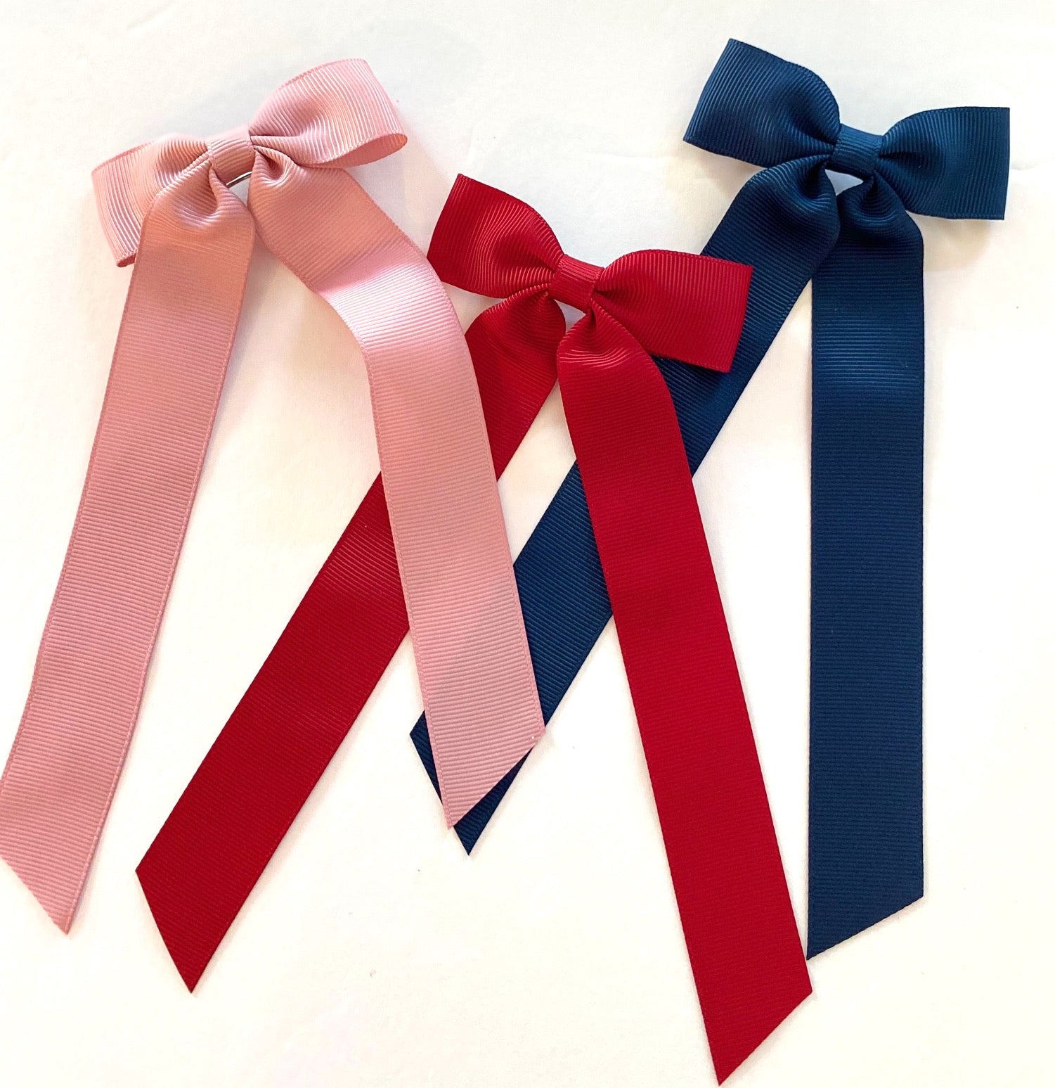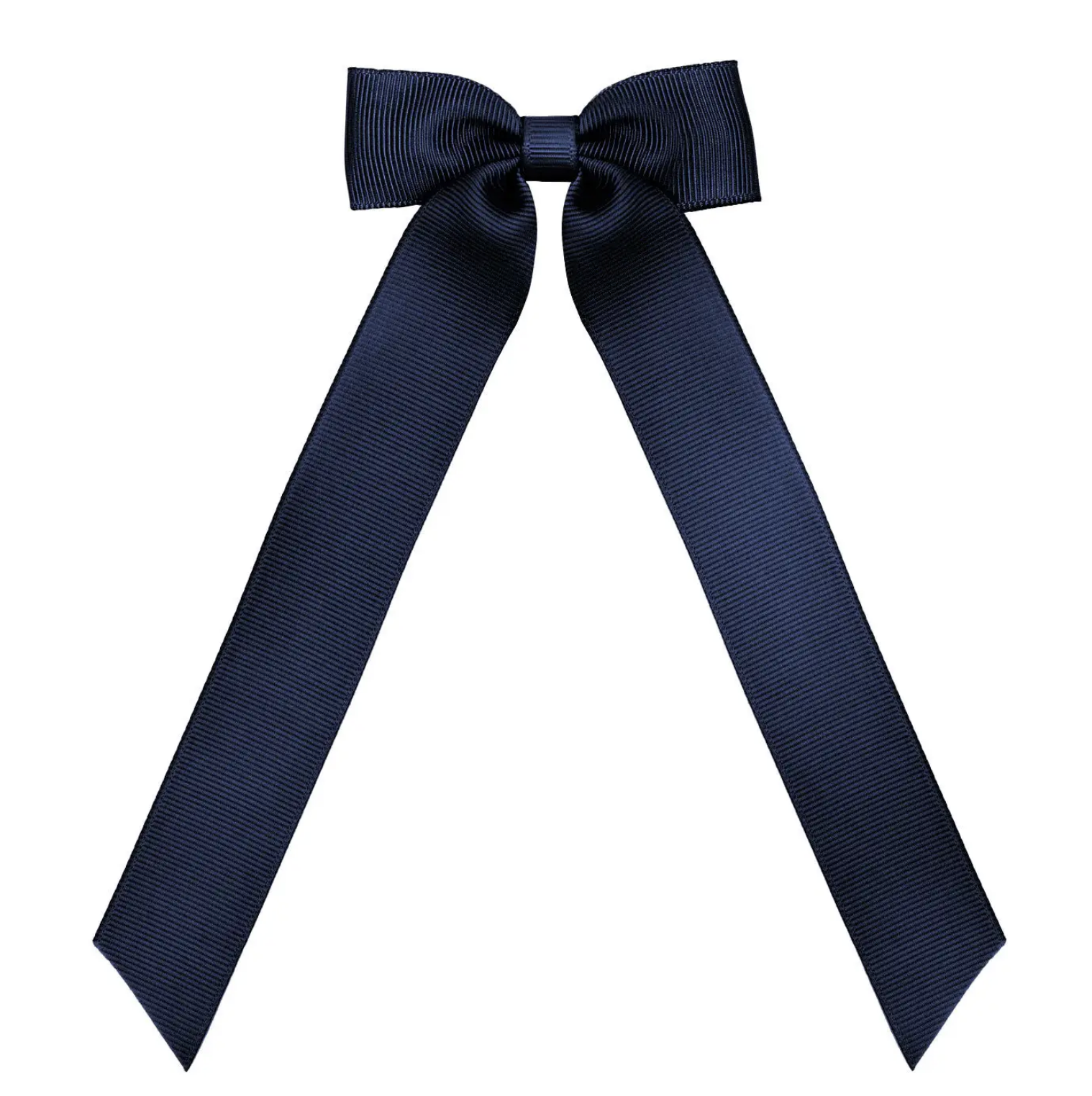 Medium grosgrain bow on a hair clip. Bow measures approximately 7cm by 2.5cm. Tail measures approximately 18cm.