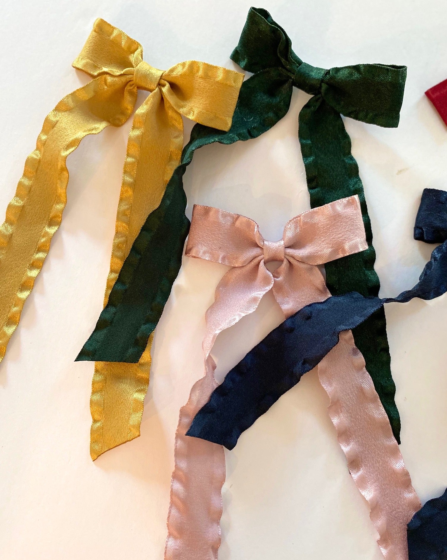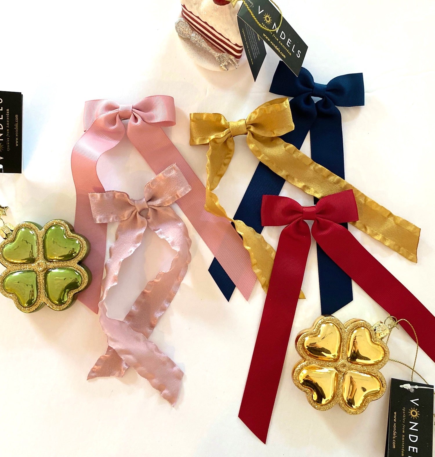Bow measures approximately 7cm by 2.5cm. Tail measures approximately 18cm