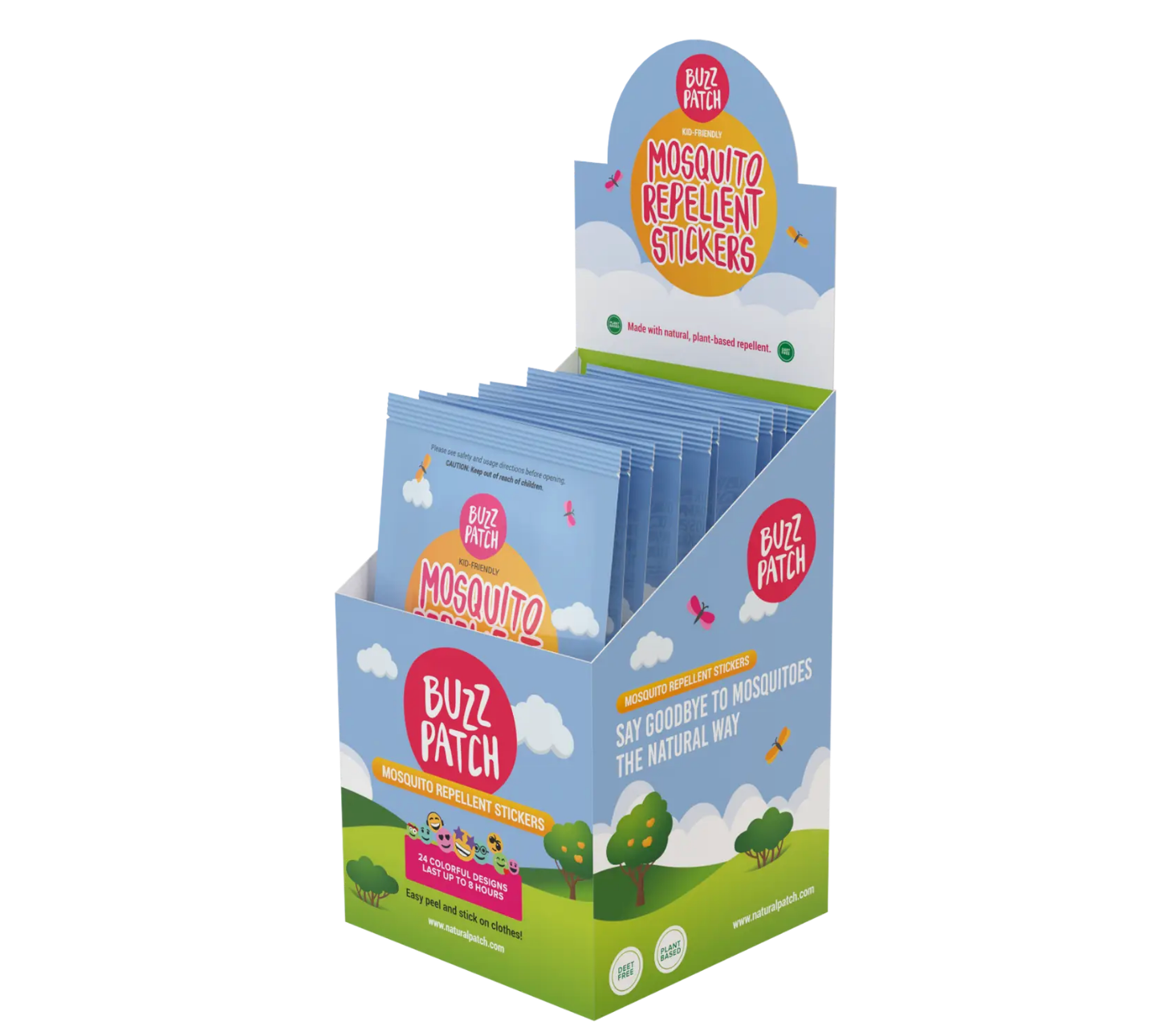 Meet the world’s first mosquito repellent sticker! This is a pack of pure magic, loved by celebrities like kim kardashian. Our scientifically formulated and tested blend of all natural essential oils is the perfect mosquito repellent, bug repellent, and insect repellent - but it’s not a spray. Protect yourself, your kids, and your family from mosquito bites with the world's first 100% non-toxic, all-natural, and non-spray insect repellent. Simply peel off a sticker from the pack and put it on clothing or objects near exposed skin. Each retail ready carton ship as pre-packed retail display boxes with 30 buzzpatch individual packets in each carton, simply open, fold and put on display. Our retail-only packs come with 24 individual patches (not available online).