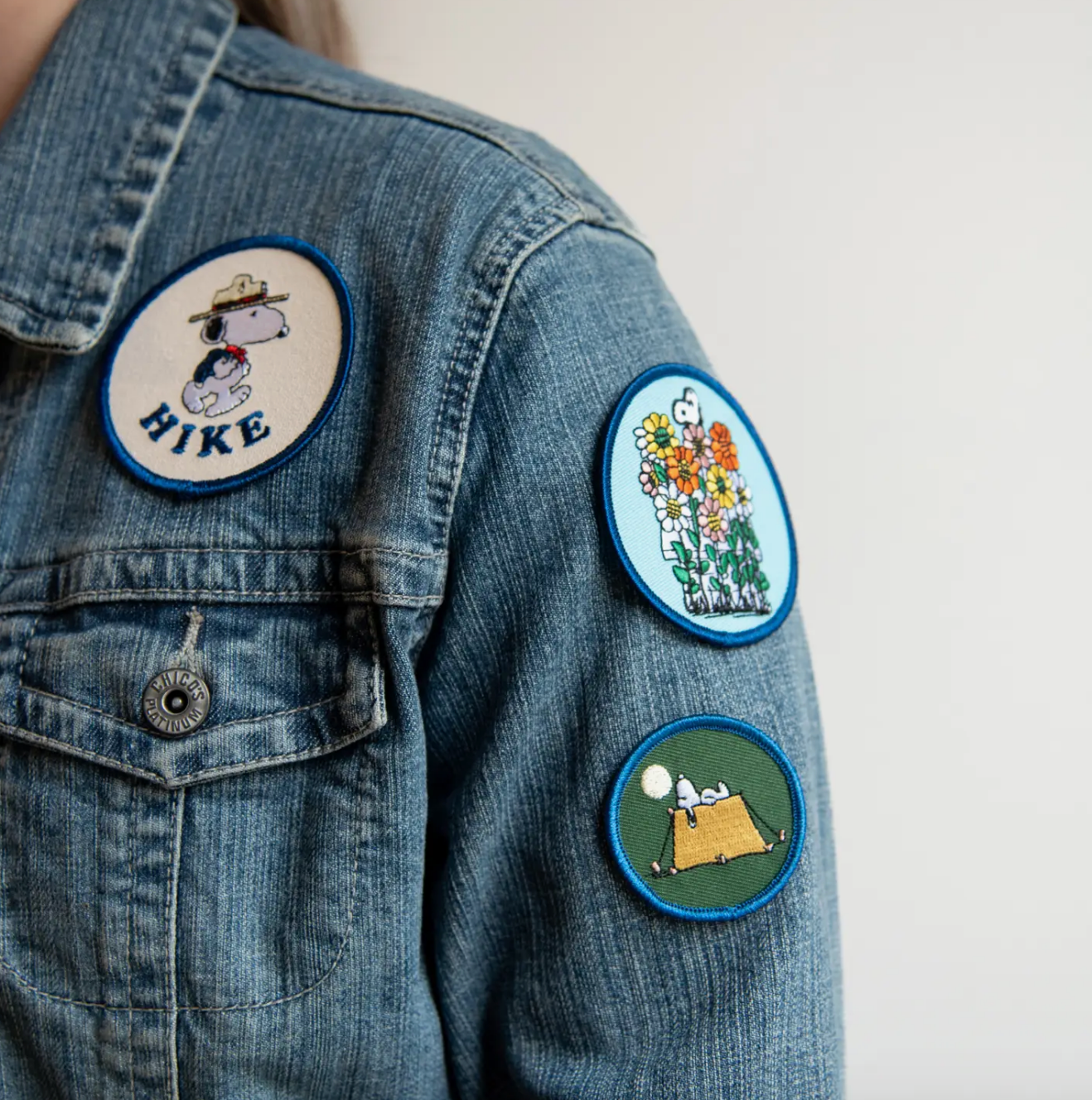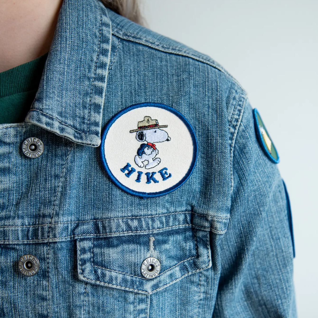 Classic embroidered patch with a loving touch of Snoopy nostalgia. • Officially Licensed Product of Peanuts© • 3" Diameter Embroidered Patch • Natural Oxford Cotton Material
