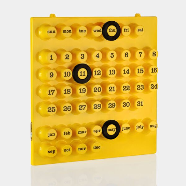 Designed by Giorgio Della Beffa in 1970, the “Ring a Date Perpetual Calendar” was immediately appreciated by the public all over the world, crowning its success with an exhibition of several years at the “Museum of Modern Art” in New York (MoMA ). Subsequently, given the great success, as you can see in these photos of the time, the table versions and one of intermediate size were manufactured.
