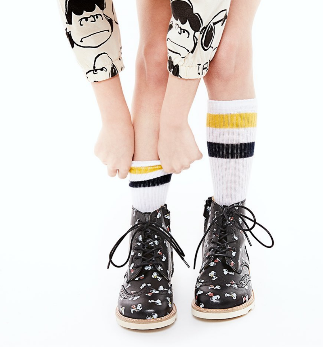 PEANUTS has teamed up with London-based footwear brand Young Soles to create a small collection of retro-cool children’s shoes and boots featuring one of Charles M. Schulz’s beloved characters, snoopy. This children’s collection uses images of Snoopy from the peanuts archive to create a fun and playful all-over-print pattern. The pattern has been applied to the Rosie T-bar shoe, one of the most loved Young Soles styles.