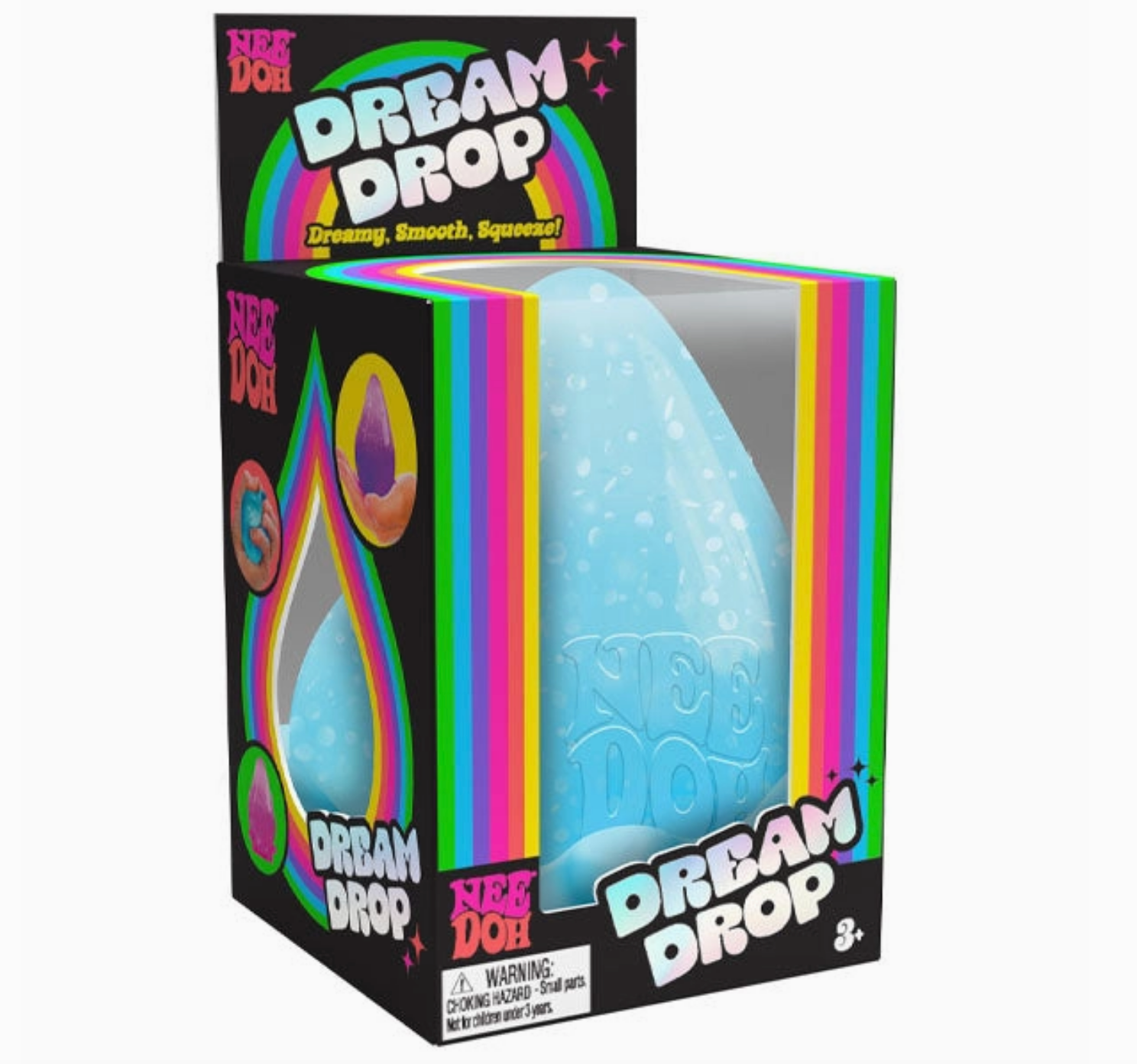It's Like Chewing Gum For Your Hands! Introduce the Nee Doh Dream Drop Squishy Fidget Stress Ball to your store’s collection! Shaped like a delicate droplet, this squishy toy is filled with dream-like sparkle gel, providing a soothing, glittery texture that’s perfect for relieving stress, anxiety, or just passing the time. Squeeze, stretch, and fidget to feel the calming effects. The Dream Drop also features a stylish, translucent splash base for easy display, making it ideal for desks, nightstands, or anywhere you want a touch of sparkle. A must-have for anyone seeking stress relief, improved focus, or a fun, calming distraction. Perfect for retail spaces looking to offer a trendy, therapeutic, and engaging product for all ages!