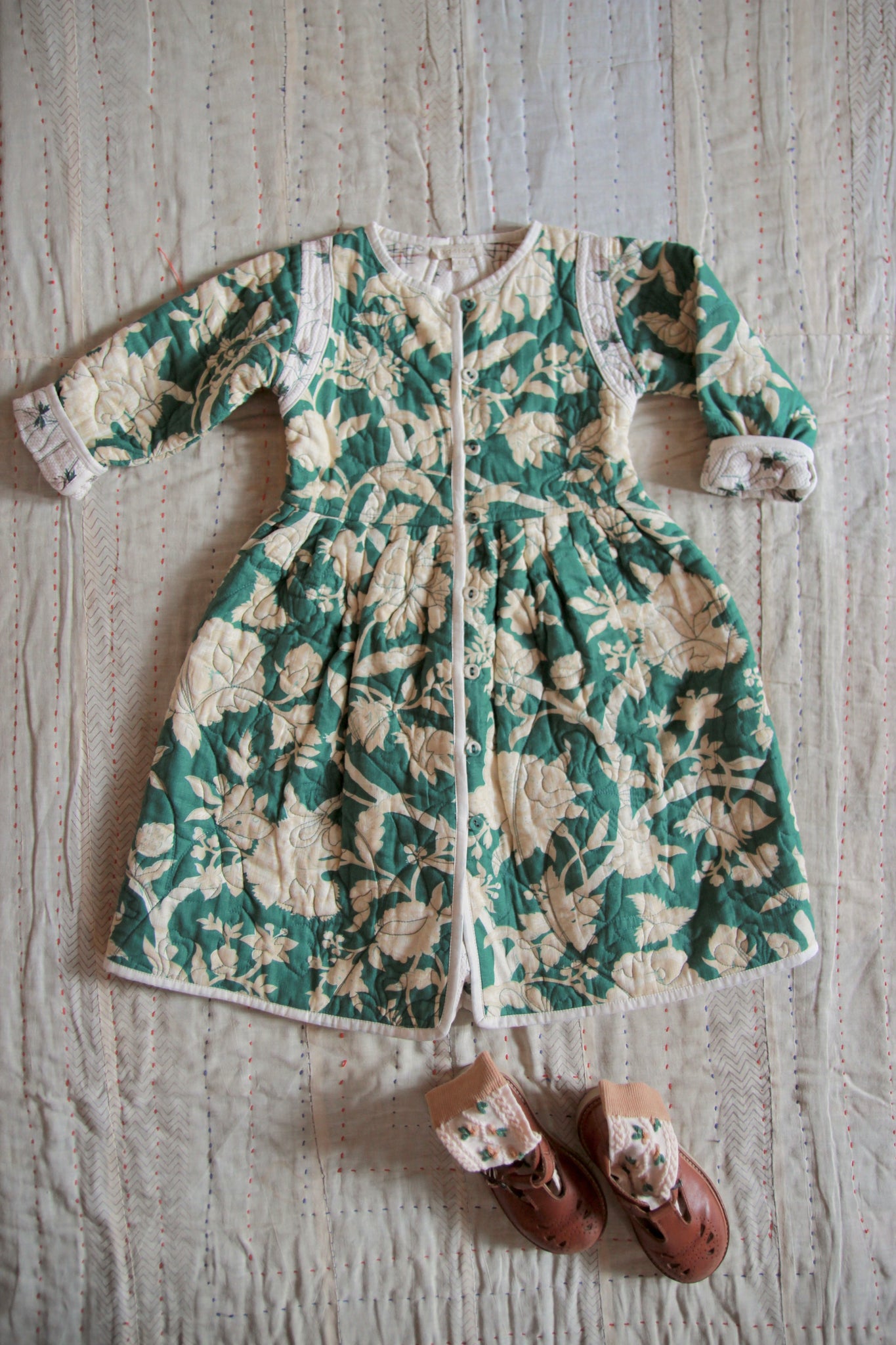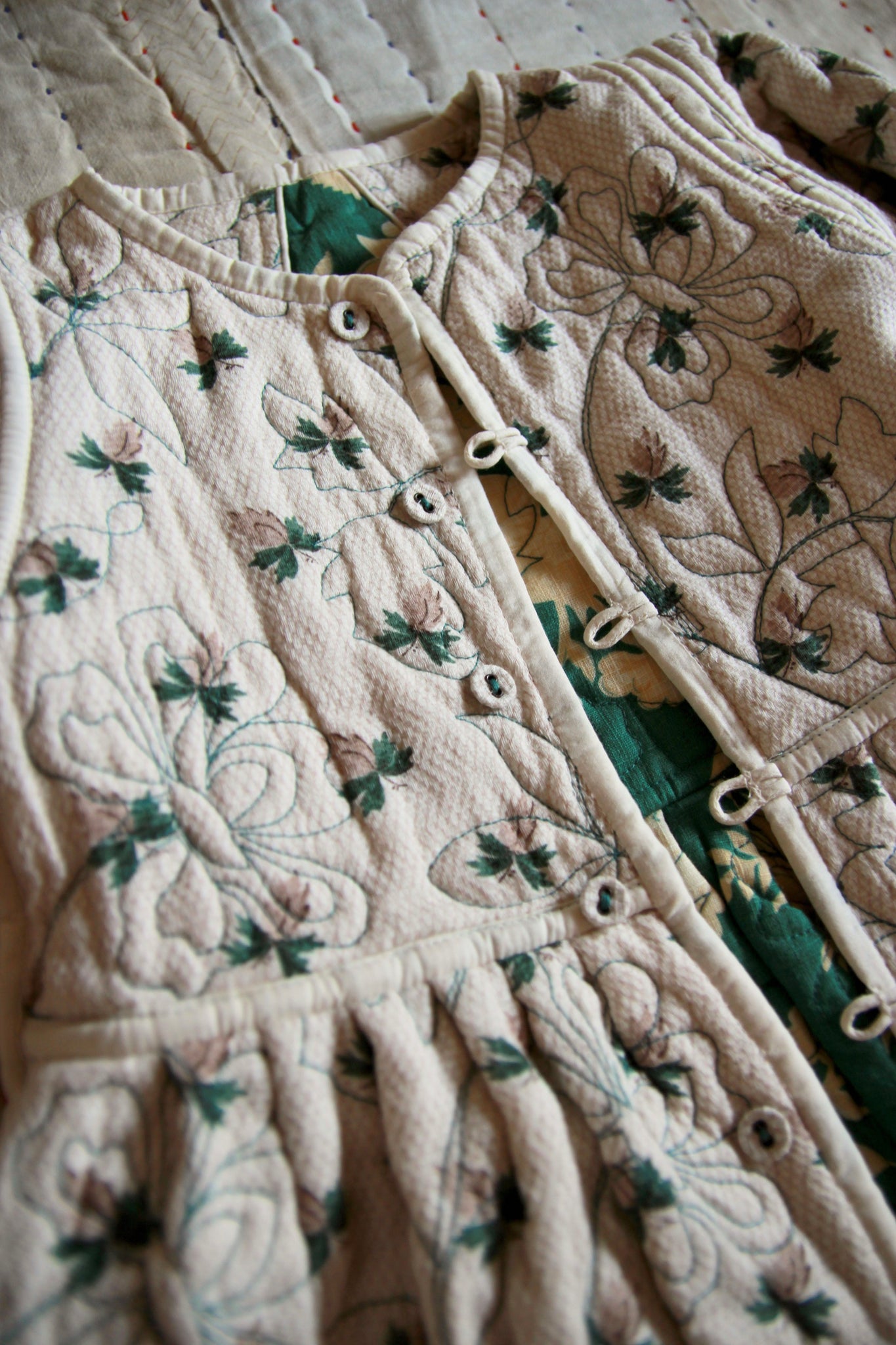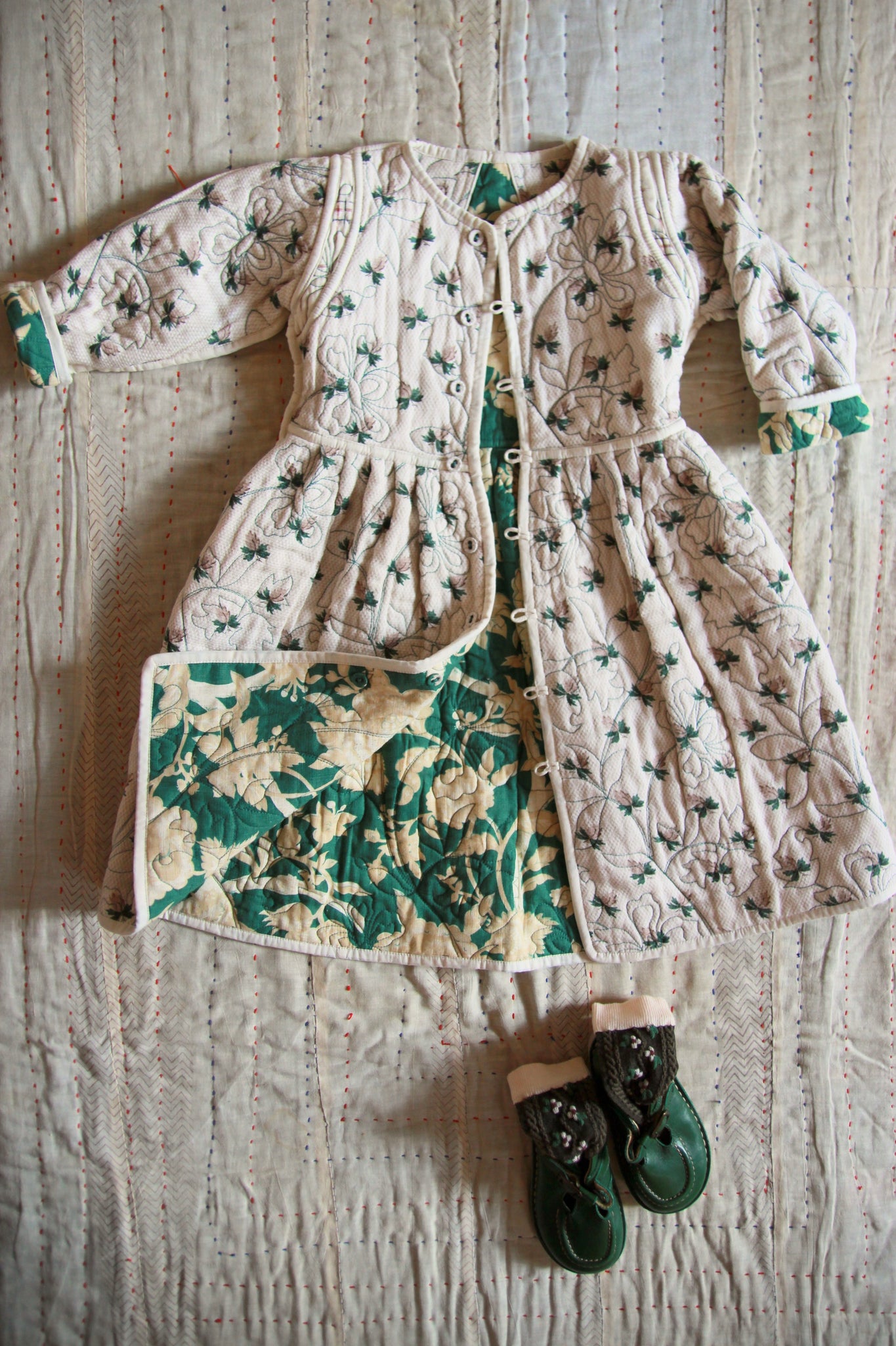 Quilted Dress coat green flower