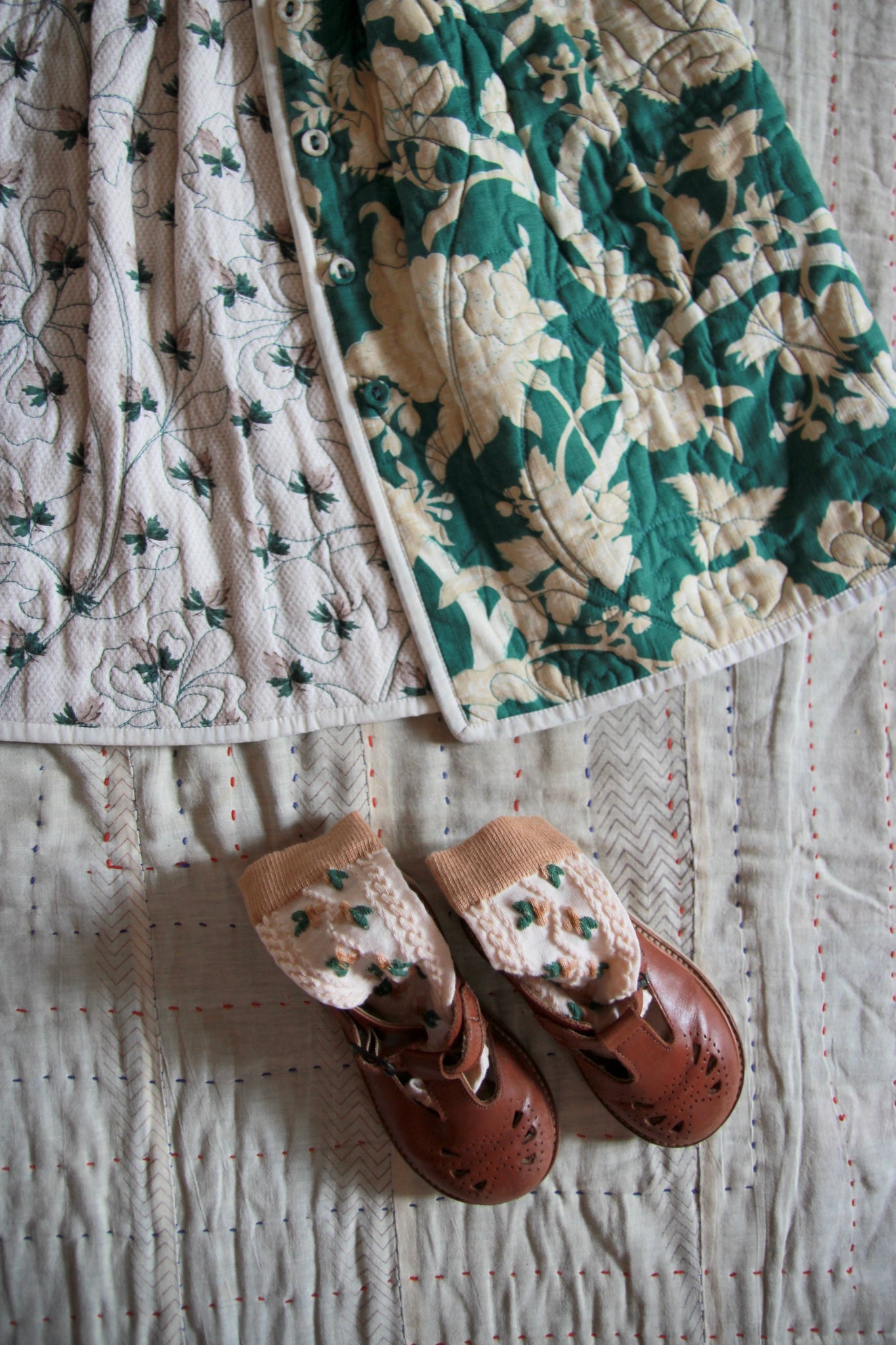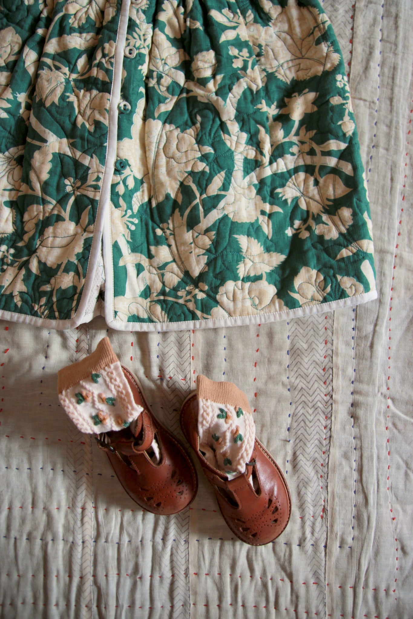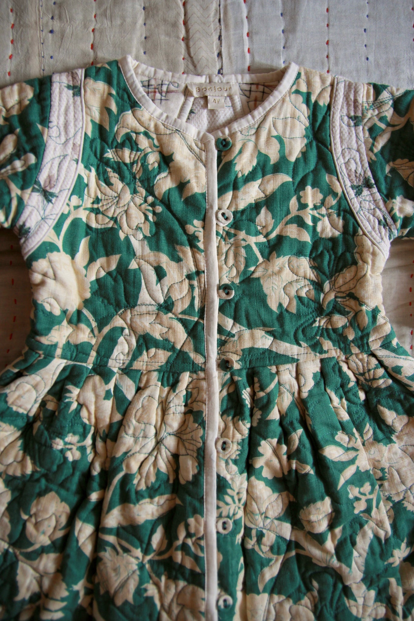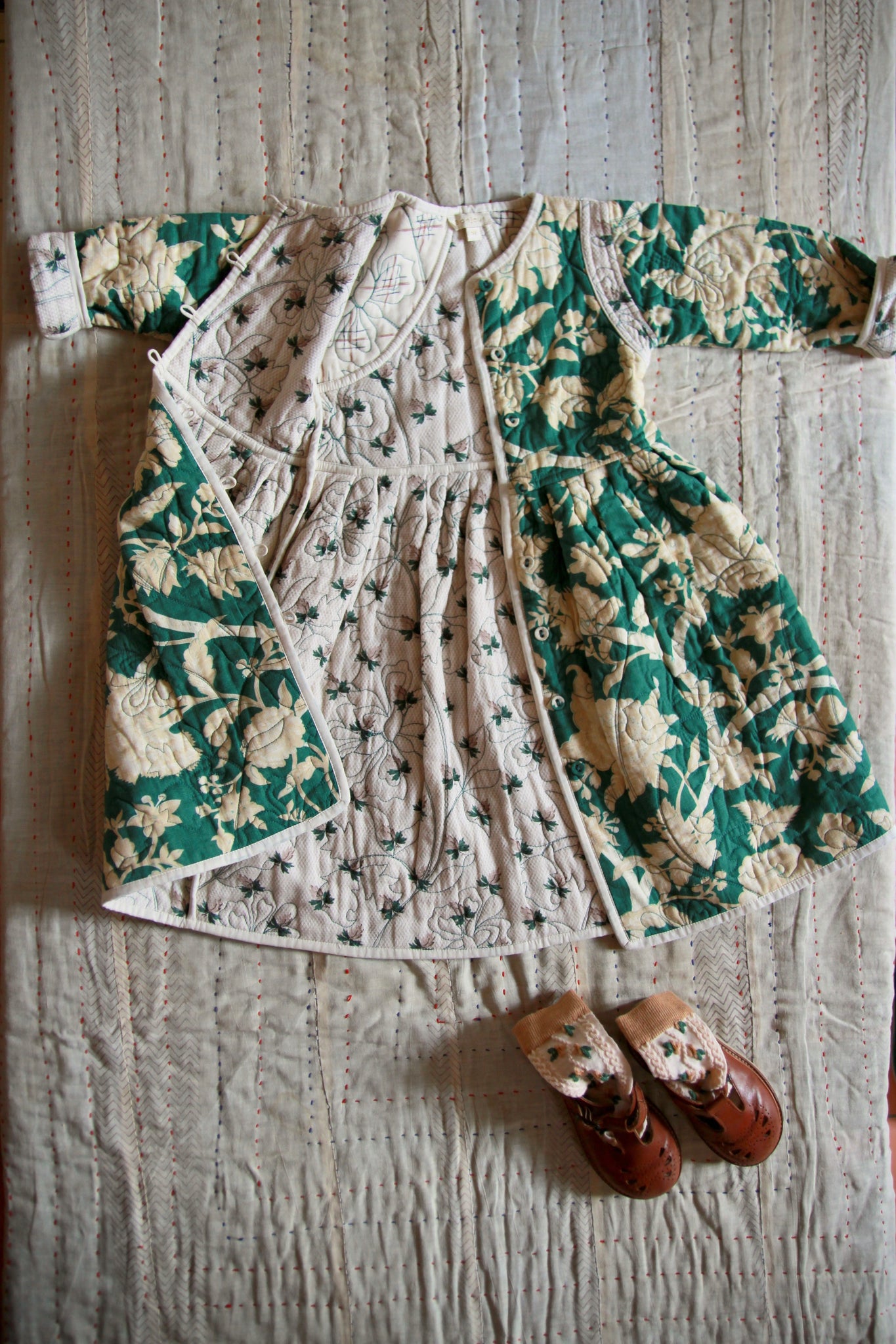 Quilted Dress coat green flower
