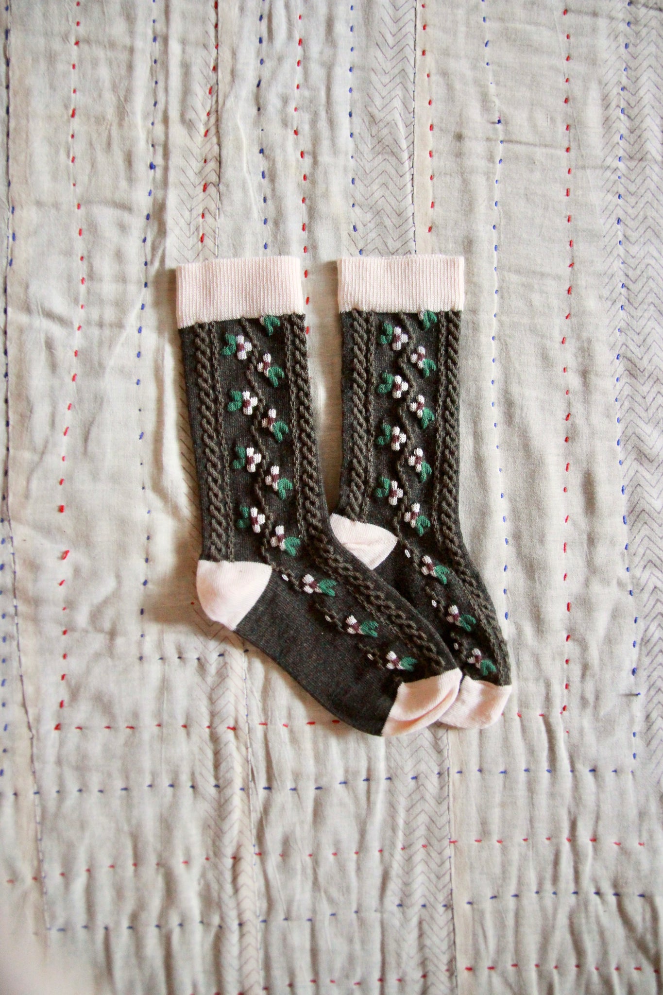 (-50%) Socks kaki green 'relief flowers'
