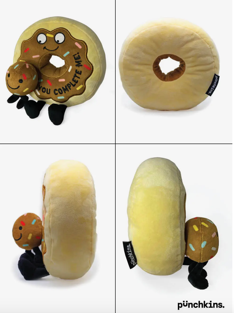 YOU COMPLETE ME PREMIUM QUALITY: This plushie is stuffed with personality! Each Punchkin is made of super soft fabric with detailed embroidered expressions and punchlines. The weighted base keeps it sitting upright so everyone can easily see them on display at home, work, or anywhere you want to show off some personality! PERFECT GIFT: Donut forget your anniversary this year! This donut plushie makes the sweetest gift for your special someone with its soft fabric, weighted bottom, and embroidered details. SHELF-SIZED: Punchkins are perfectly sized to showcase on a bookshelf, desk, or any other flat surface. They also make for great social media posts #punchkins Punchkins are LOL fun. They’re giftable, salty and sometimes sweet plush waiting to be given to your favorite people. Punchkins are the perfect gag gift for birthdays, white elephant parties, or any thinking-of-you occasion. Size: 7" x 2" x 7"