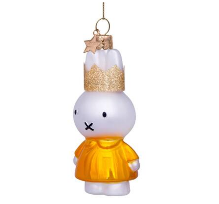 Ornament glass Miffy yellow dress w/crown H11cm w/box