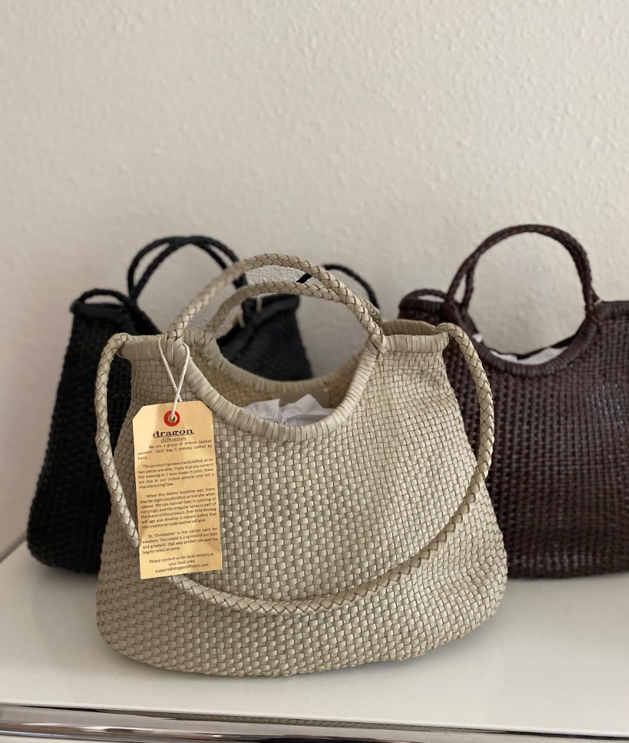 Each Dragon Diffusion bag is handwoven, resulting in unique variations in color and texture. These characteristics are not flaws but a testament to the handmade quality and natural materials used.