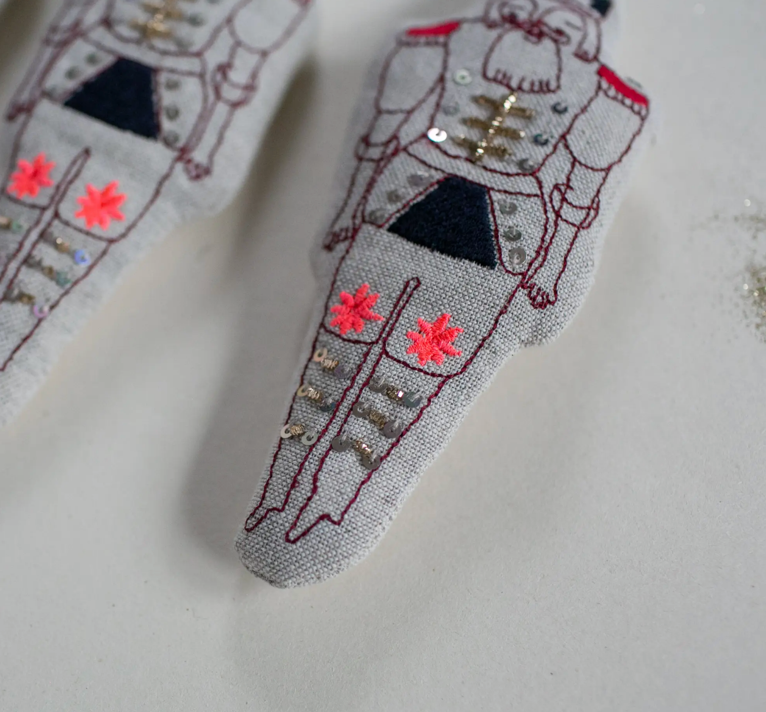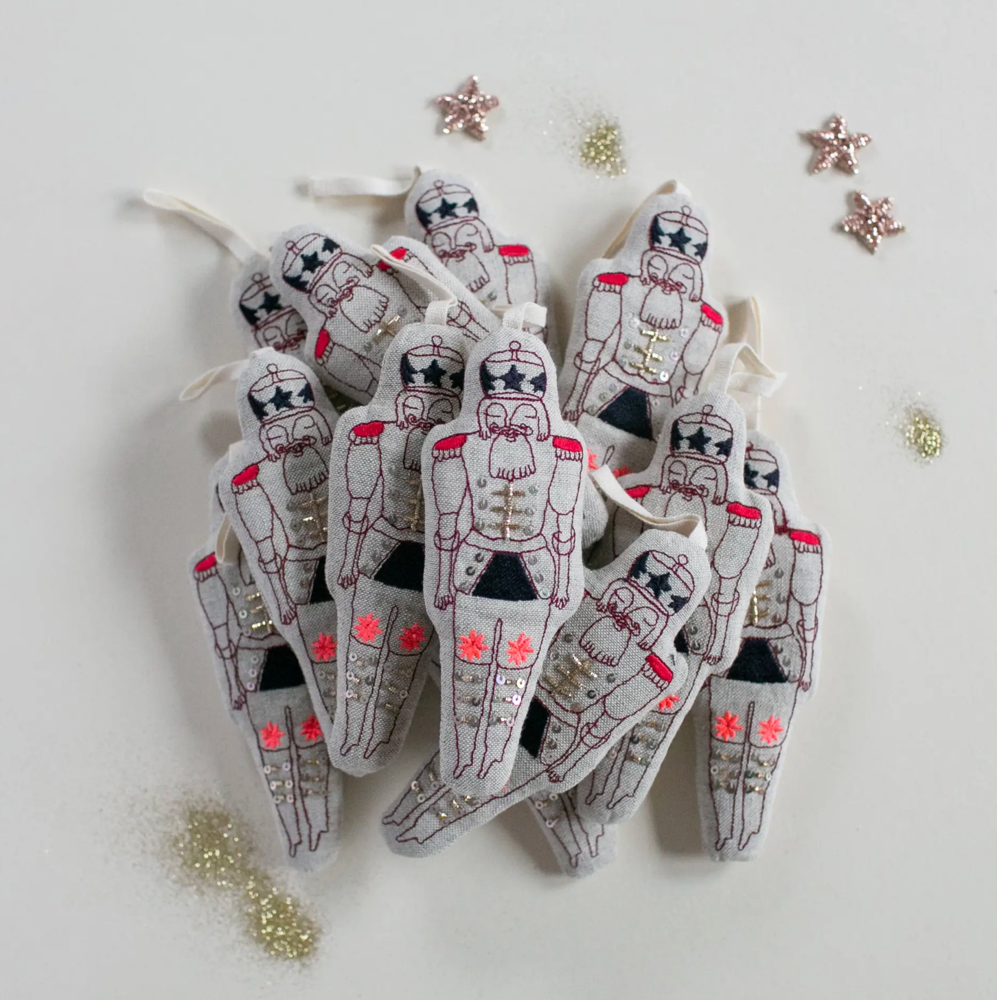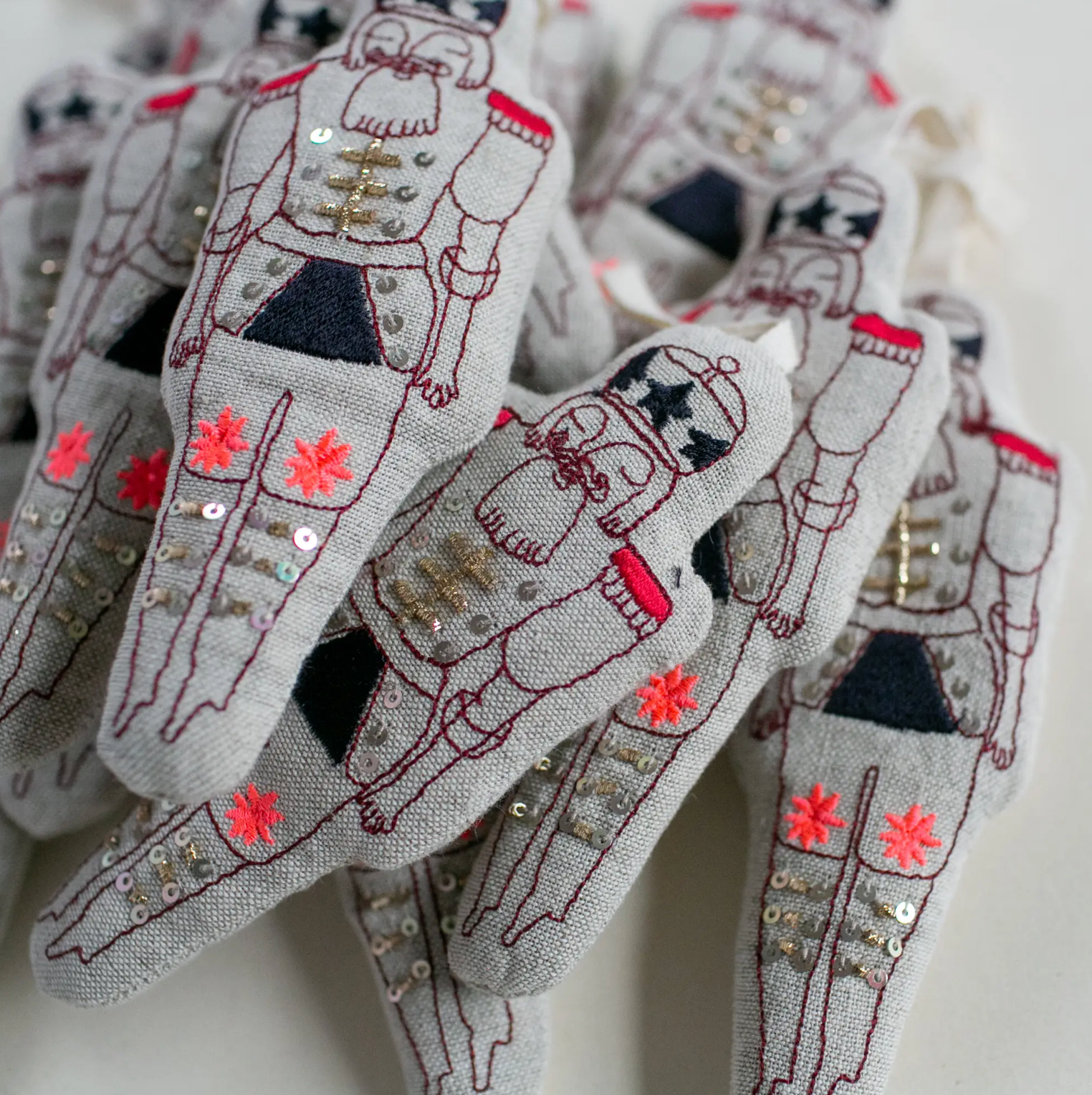 Our signature lavender-scented ornaments are a lovely gift for any time of year. Perfect for gift toppers, closet or drawer sachets, holiday ornaments, or year-round décor. Each scented ornament is hand illustrated and embroidered using vibrant polyester threads on assorted linens. Each ornament is hand cut, turned, and stuffed with organic cotton and lavender. Natural twill tape is placed on top for hanging.