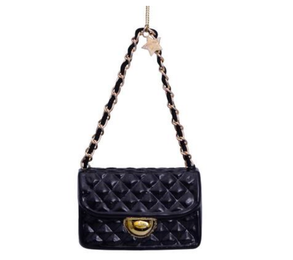 Ornament glass black fashion bag H7cm