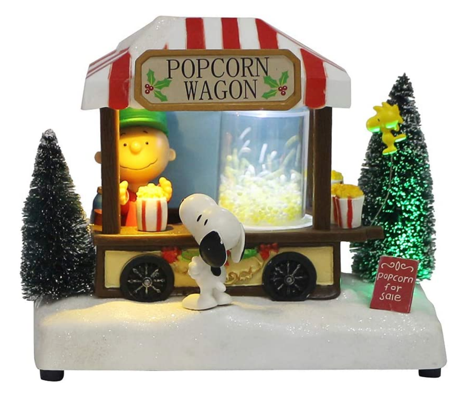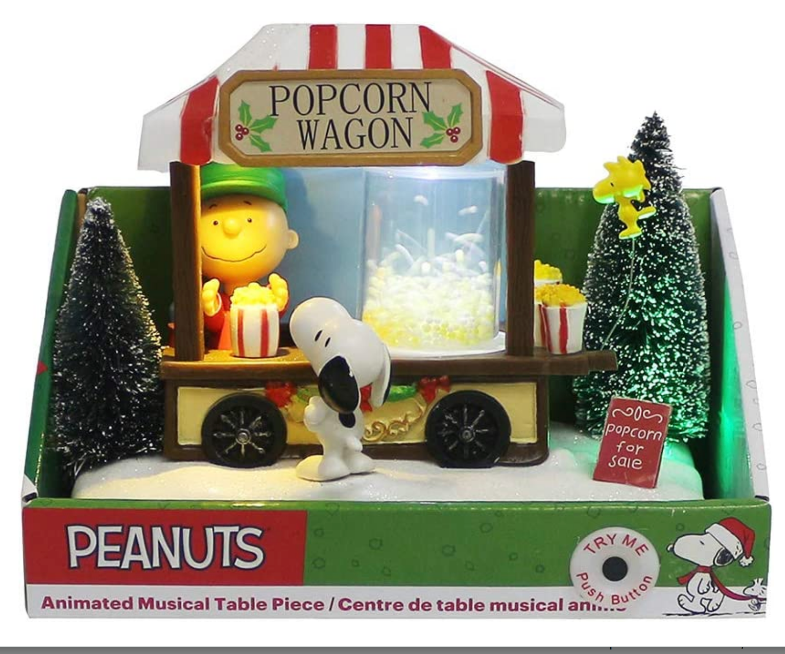 7"peanuts musical led popcornament wagon light up tablepiece. Uses 3 "aa" batt. (incl).