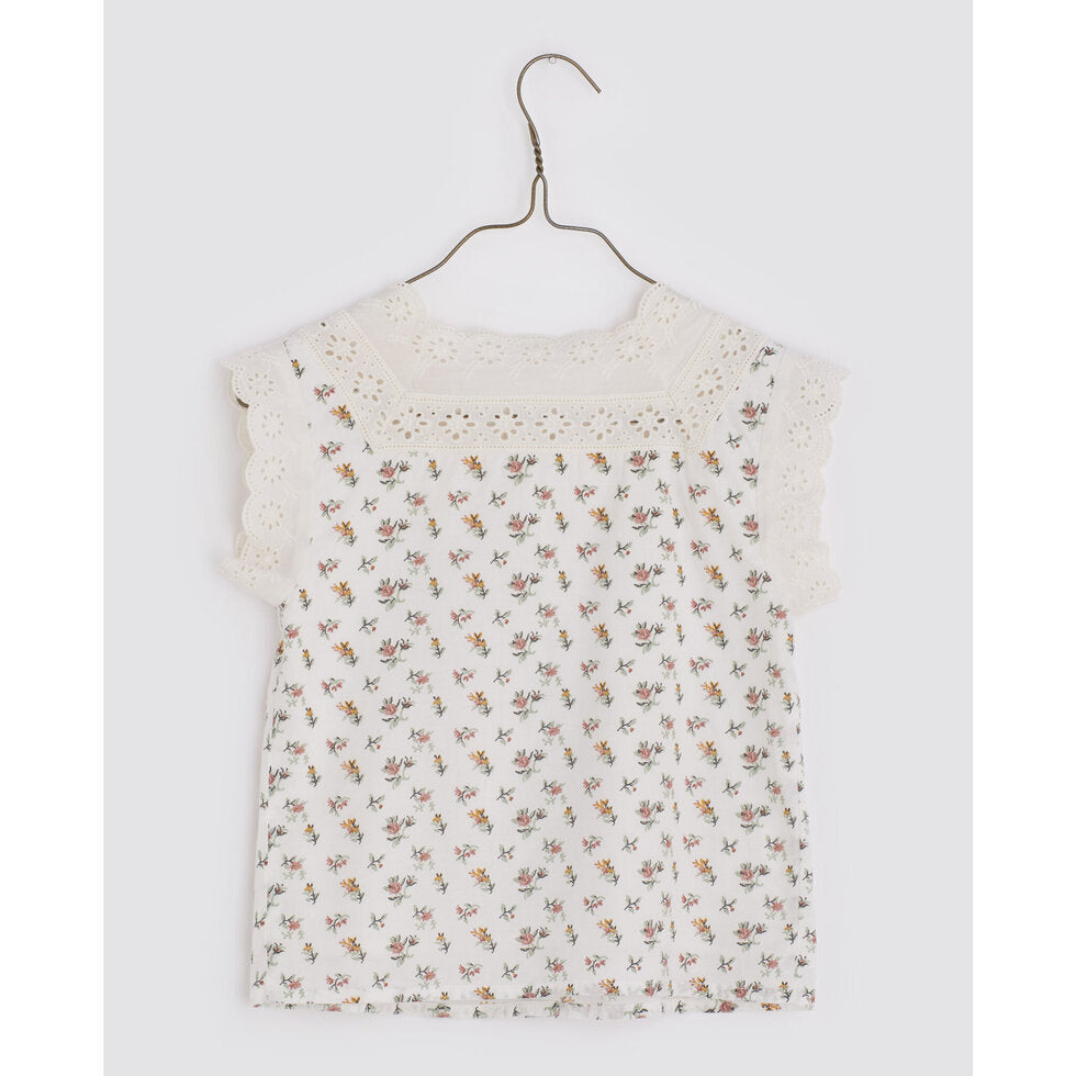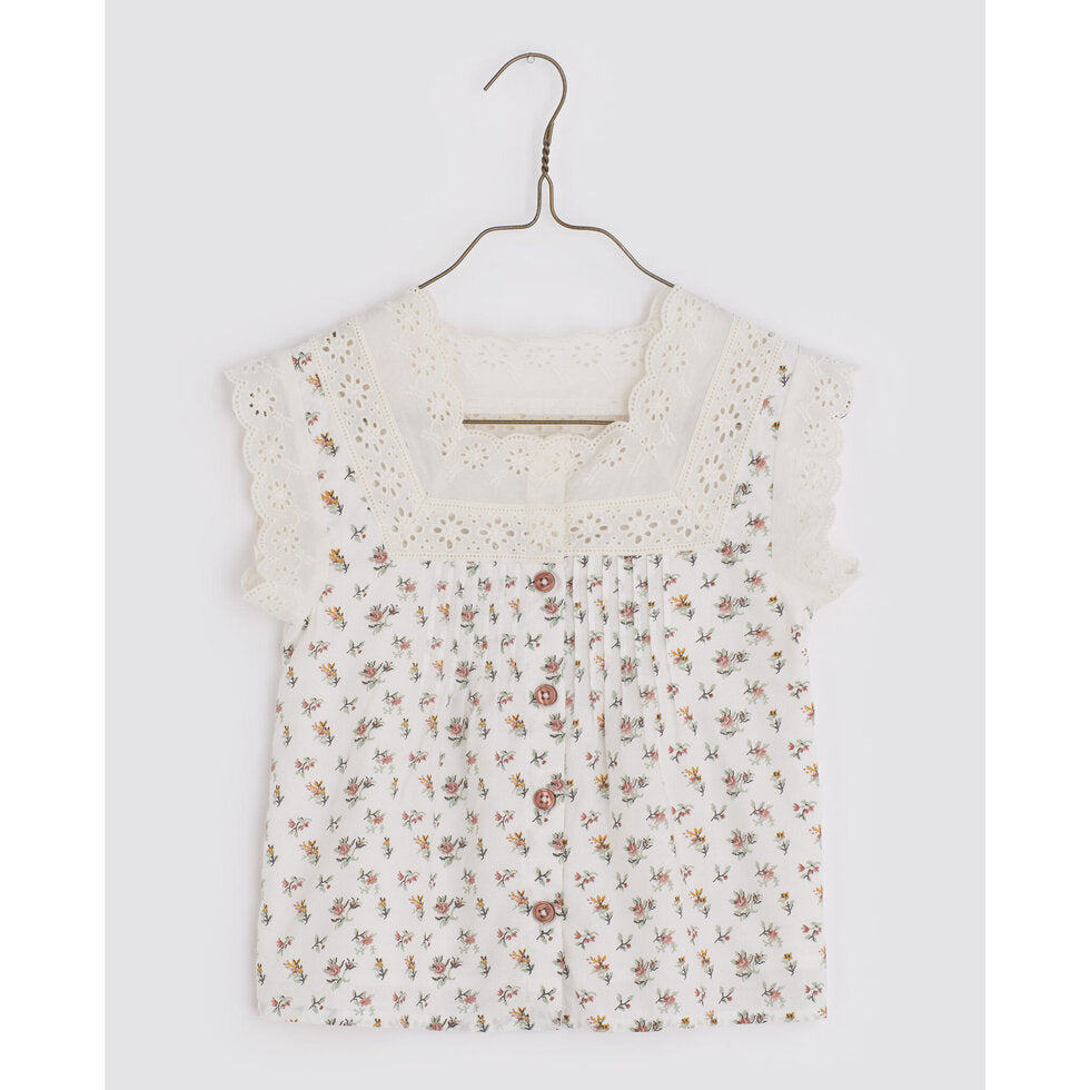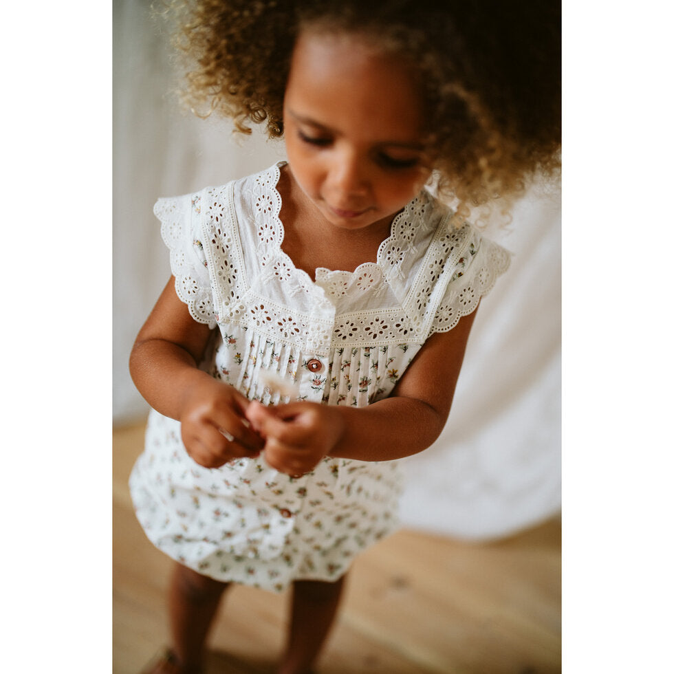 A beautiful vintage style Summer cotton blouse, pleated button front detail with delicate broderie anglaise trim. Perfect with with our linen shorts and sandals.