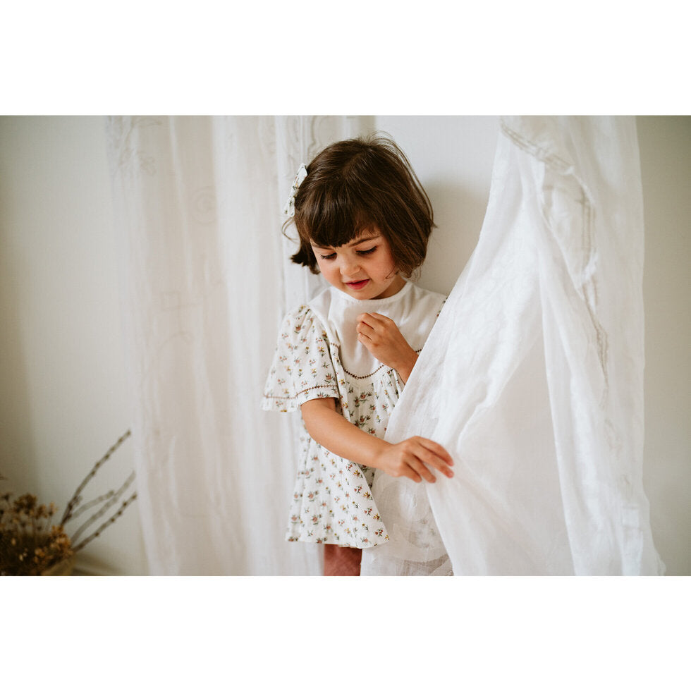 Made in a soft, fine cotton voile with ladder stitch detailing to its yoke, this top is perfect for summer. It's light and floaty and looks wonderful dressed up for a party, or down for a day playing at the beach. Pair it with our linen shorts or matching bloomers to create a sweet little play-set, or for older children it looks great with shorts and sandals or with jeans on cooler days.