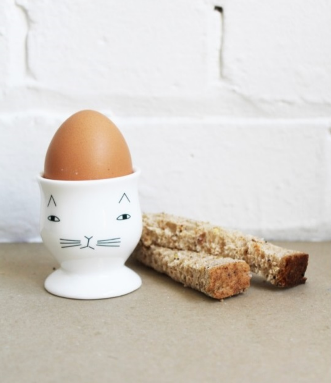 Dip your soldiers in this friendly faced egg cup. Make a matching trio with our Grace Mug and Plate. 6 x 5 cm diameter. 100% bone china, decorated by hand in Stoke-on-Trent, UK.