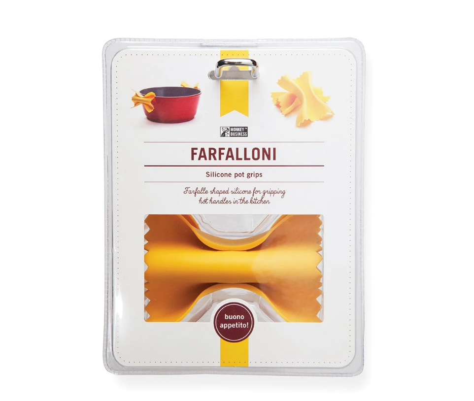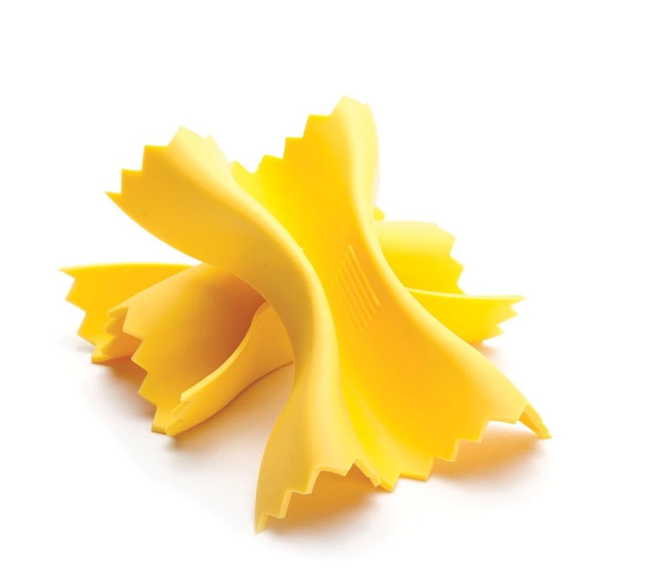 turdy farfalle shaped silicone for gripping hot handles in the kitchen.