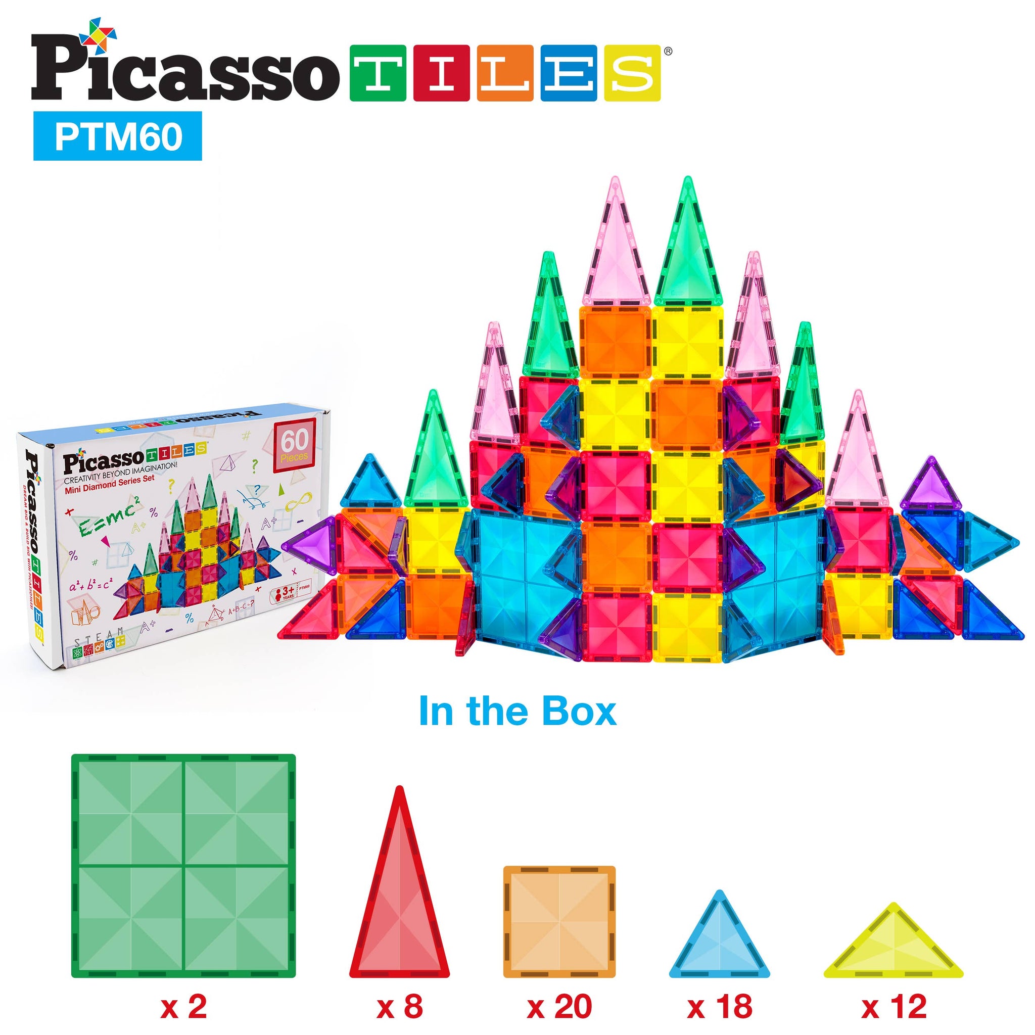 LEARNING BY PLAYING - Never too early to start developing kids' creativity. Children can acquire a strong sense of color, magnetic polarities, and 3d architectural design at an early age. "Please note mini diamond tiles are not compatible with the regular full-size tiles" In The Box: - 18 Mini Equilateral Triangles - 20 Mini Squares - 12 Mini Right Triangles - 8 Mini Isosceles Triangles - 2 Mini Large Squares