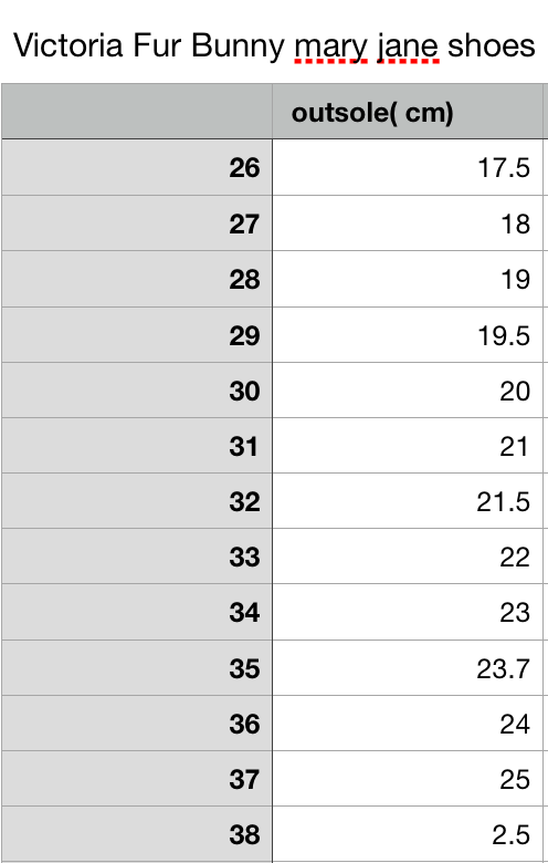 사이즈는 넉넉한 편입니다. 빅토리아벨벳 메리제인 보다 크게 나왔습니다. 참고해주세요.차트는 바깥밑창 길이입니다. 아이 발 실측을 재셔서 차트에서 0.8-10mm정도 더하면 맞는 사이즈입니다. 예를 들어 아이 발이 19 센치이면 30을 추천합니다.