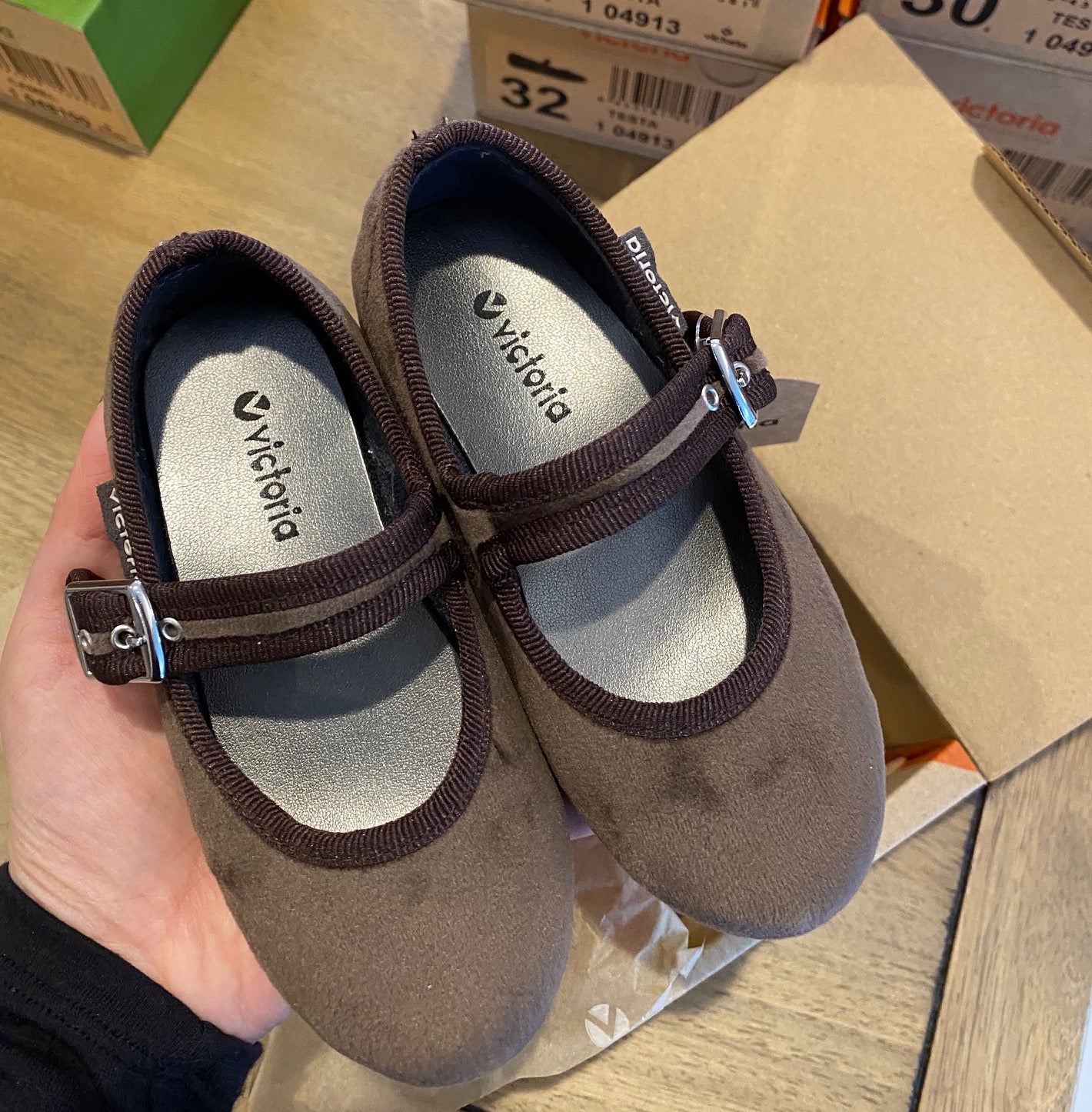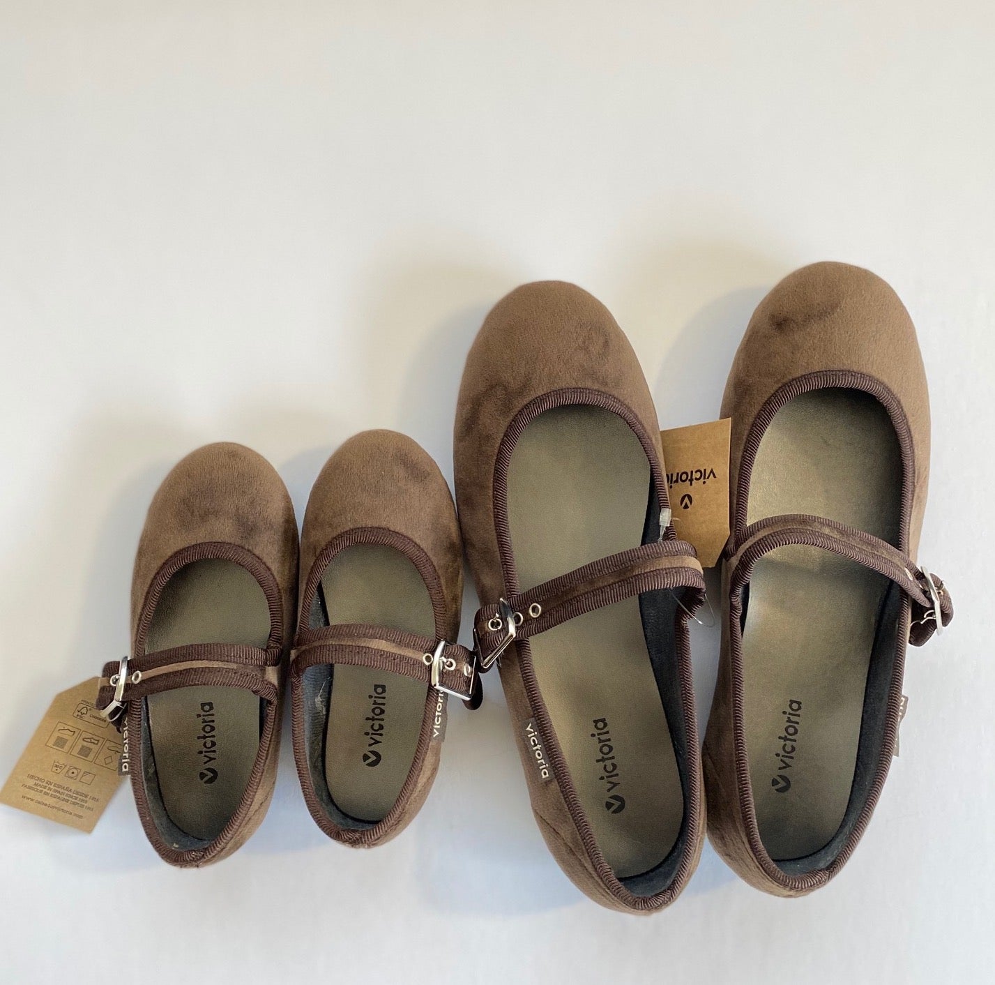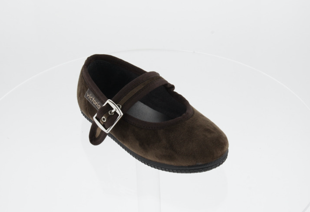 Classic Victoria Mercedes for girls. Made in Spain, from velvet with rectangular buckle closure and 100% natural rubber thin sole.