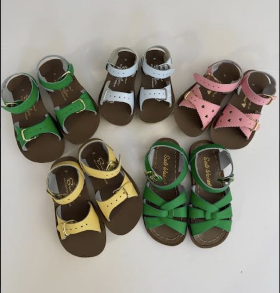 Salt Water® Classic Slides little kids, big kids and women. They boast an adjustable strap across the width of the foot for a secure yet open heal fit that allows you to slide them on and off. Rust-proof brass buckles and scuff-resistant, water friendly genuine leather make them ideal for in-and-out of water wear.