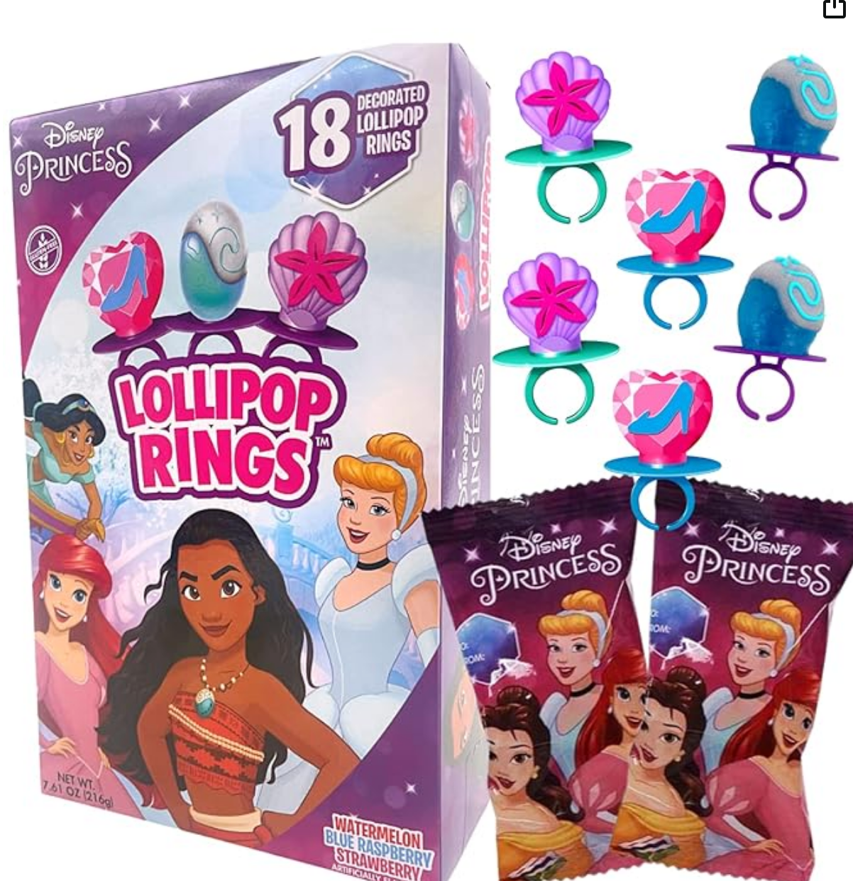 Disney Princess Valentine's Day Classroom Exchange Lollipops Rings - 8.46oz/20ct