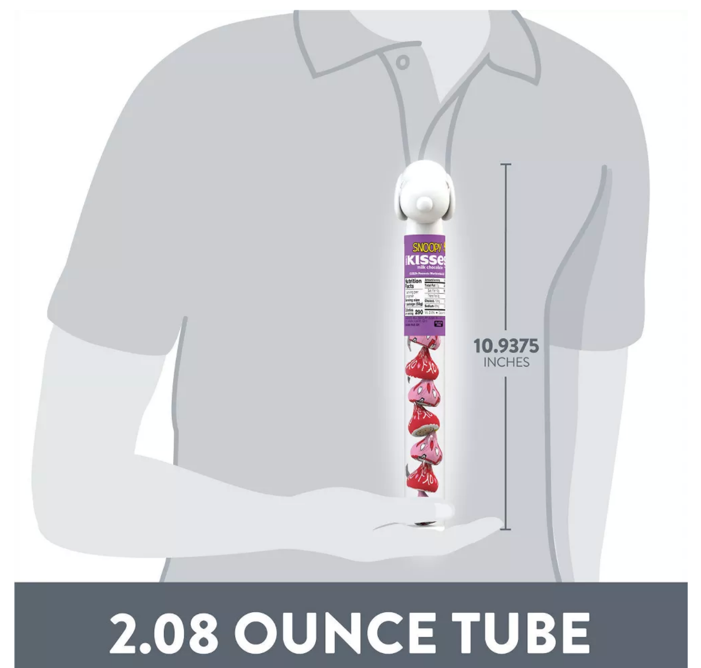 Contains one (1) 2.08-ounce plastic cane of HERSHEY'S KISSES Snoopy and Friends Milk Chocolate Candy