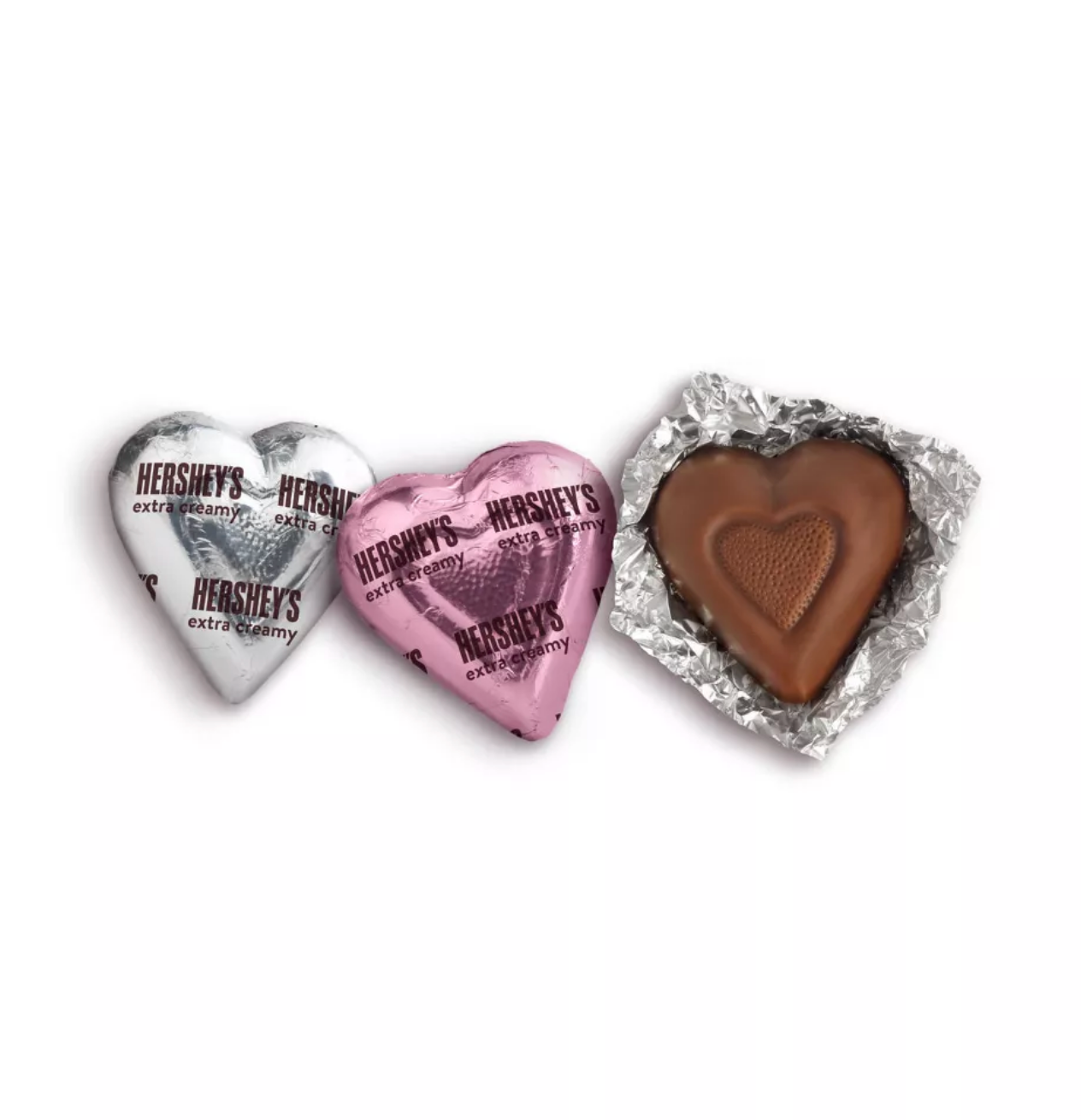 Treat your loved ones this Valentine's Day with HERSHEY'S extra creamy milk chocolate hearts candy. Perfect for lunch boxes, snack breaks, movie nights and sharing moments throughout the season, these candies are crafted with extra creamy milk chocolate for delicious, indulgent flavor in every bite. Each heart comes individually wrapped in silver or pastel pink Valentine's Day foil, providing an eye-catching focal point for any Valentine's Day celebration. Prepare party favors and gift bags with holiday inspired HERSHEY'S chocolates, or pass these extra creamy milk chocolate snacks out at the office to add some excitement to your holiday traditions. Bring a bag of chocolate candies to your next movie night with friends, family members or co-workers for a sharable candy snack even Cupid would approve of. If you're looking for a more creative option, try bringing these chocolate candies into the kitchen to place on top of your best cookies, brownies, cupcakes or pies and give them to all of your loved ones during the season of love. Let cool, serve to loved ones and wait for the recipe requests to pour in. Just don't forget to save a few extra creamy chocolate candies for yourself during all that sharing.