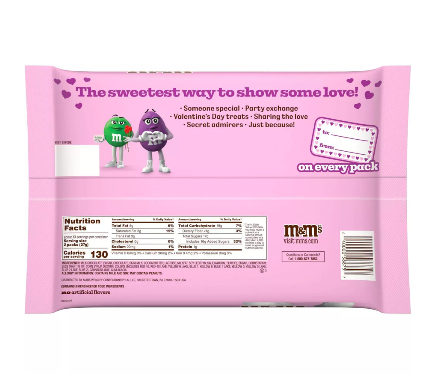 Show your Valentine a choco-lot of love this Valentine’s Day with M&M’S Milk Chocolate Valentines Day Candy Assortment. Let your loved ones know how much you care by sharing the taste of real milk chocolate covered in colorful crunchy candy shells. Be someone's secret admirer and choose this A’M&M-azing treat for your Valentine's Day gift exchange. You can also share M&M’S Milk Chocolate Valentines Day at the office to sweeten your coworker’s Valentine’s Day or simply treat yourself to a chocolate candy pack (we won’t tell!). Even make, bake and decorate your homemade Valentine’s Day desserts and treats as part of a sweet Galentine's Day celebration!