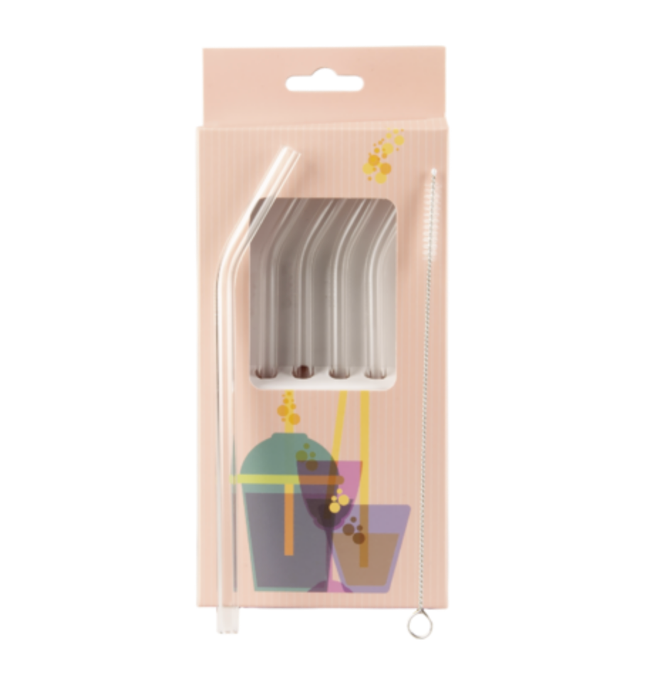 4 pieces. Borosilicate glass. The package includes a brush for cleaning.