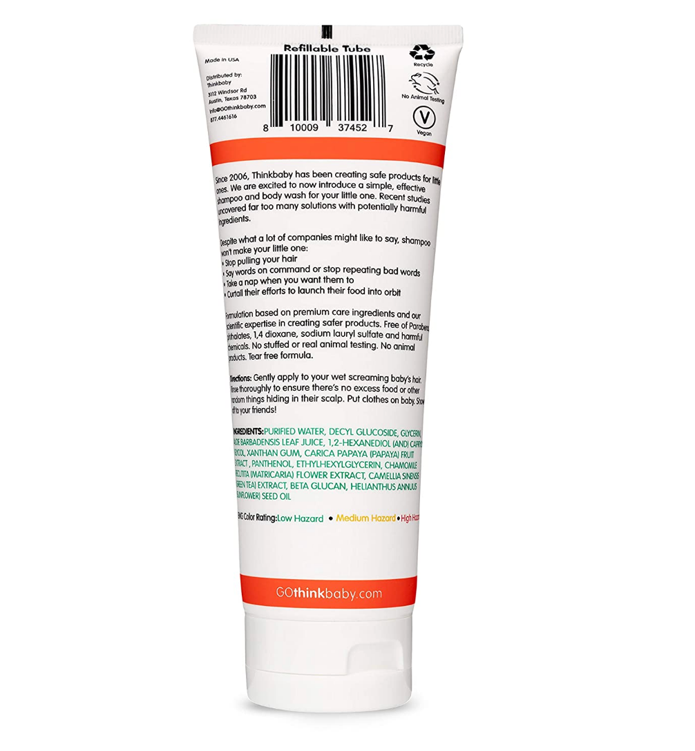 SAFE & TEAR FREE: Gentle enough for everyday use, the foaming cleanser has a no tears formula to keep babies smiling during bath time, even if they get soap in their eyes! Thinkbaby Baby Shampoo and Body Wash is ideal for newborns, babies and toddlers.